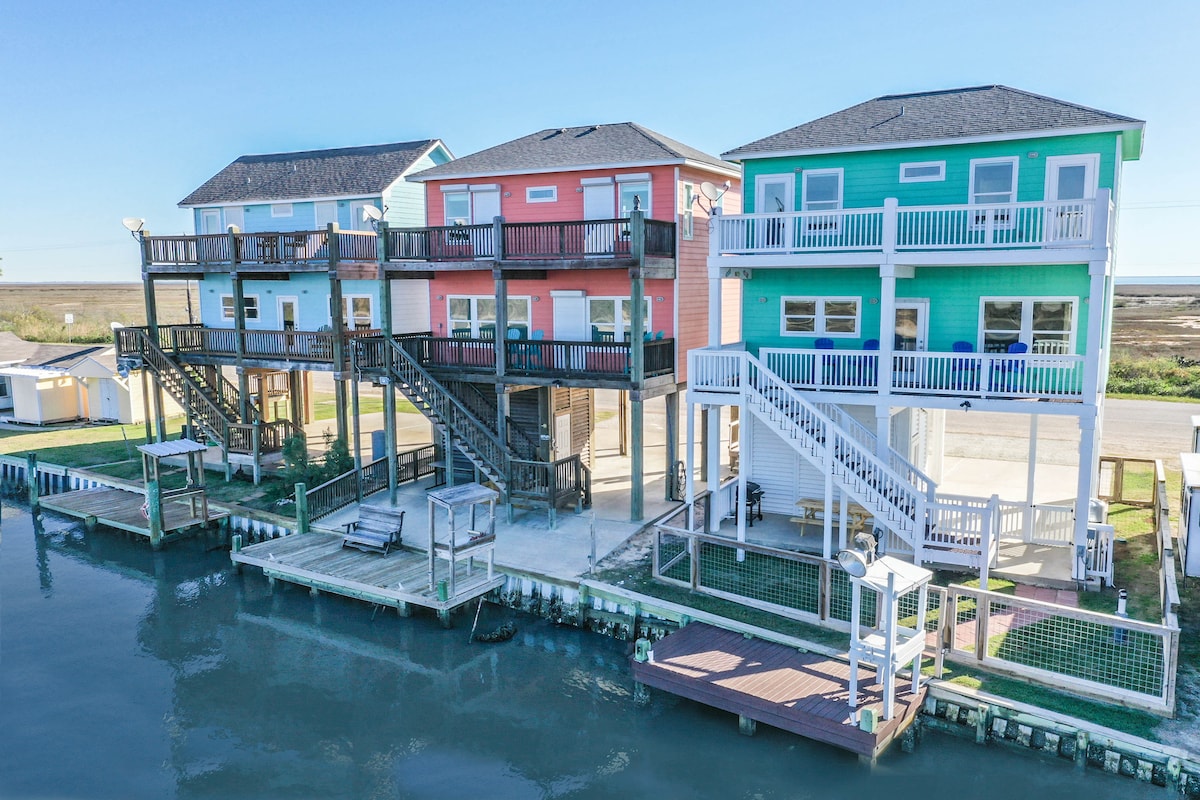 Questa bella casa super pulita con 2 camere da letto e 2 bagni e mezzo può ospitare fino a 6 persone, si trova a soli dieci passi dal fiume Colorado e a 3 minuti di auto da Matagorda Beach. Porta le tue infradito, il telo da mare e il tuo libro preferito per rilassarti su una delle 2 terrazze... o porta la tua attrezzatura da pesca e cattura pesci di grandi dimensioni proprio al largo del molo. Puoi persino pulire il pesce proprio lì e grigliarlo sulla griglia per barbecue! Porta la tua barca o kayak e salpa dal molo. Crea fantastici ricordi con tutta la famiglia in questa tranquilla cittadina sul mare!