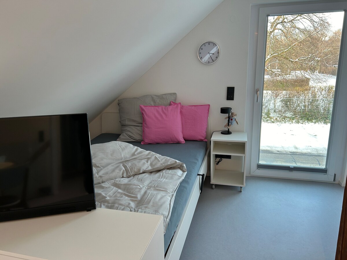 Una cucina con soggiorno, una camera da letto e un bagno solo per te. Il luogo ideale per mangiare, vivere, dormire e guardare la TV. Oppure puoi uscire per correre, fare escursioni a piedi o in bicicletta o semplicemente per fare una passeggiata nella natura. Si trova proprio dietro casa. Il nostro appartamento può essere prenotato per lavoro o per vacanza. Il nostro appartamento è adatto per 1-2 persone. 1 persona in più può dormire sul divano letto.