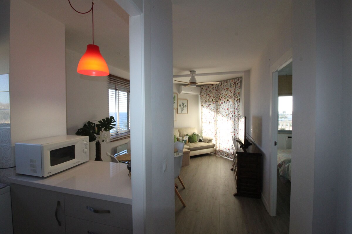 Frontbeach apartment. Direct access to the sand beach and promenade. Every bars restaurants and shops by walking. Lift. Frontal sea view. Apartement completely renovated in 2022, large living room with direct sea view. not suitable for people with reduced mobility. Perfect for 2 adults and 2 .Bunk bed consisting of 2 single beds, allowing a maximum weight of 65 kg per level.” Espagnol free parking in the streets. Spanish television Baby bed on request: 5 euros/day