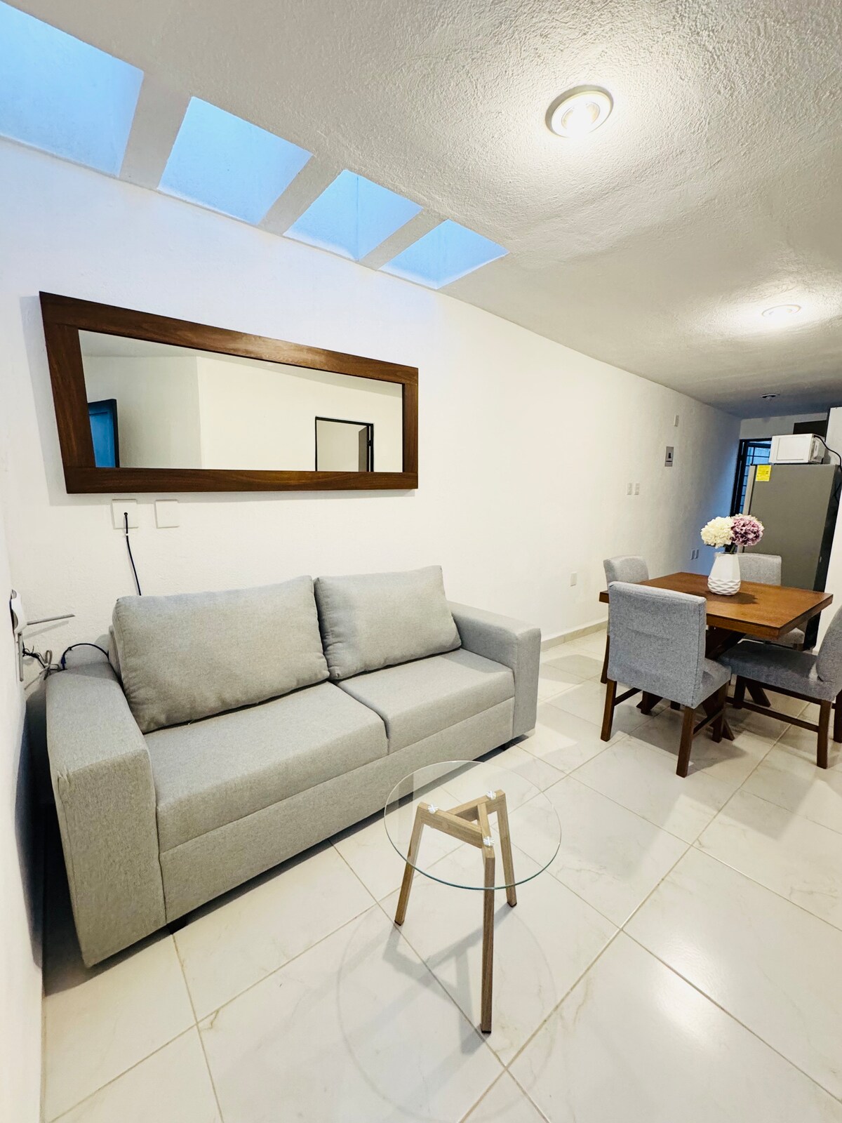 Microdepartamento compacto y funcional, diseñado para 1 o 2 personas que buscan una estancia privada, práctica y bien ubicada. Se encuentra en planta baja y cuenta con acceso independiente directamente desde la calle y chapa inteligente con contraseña personalizada. Está ubicado en una zona popular y tradicional, con vida local y comercios a pocos pasos. No es una zona turística ni residencial de lujo, por lo que es ideal para huéspedes que priorizan funcionalidad, precio y conectividad.