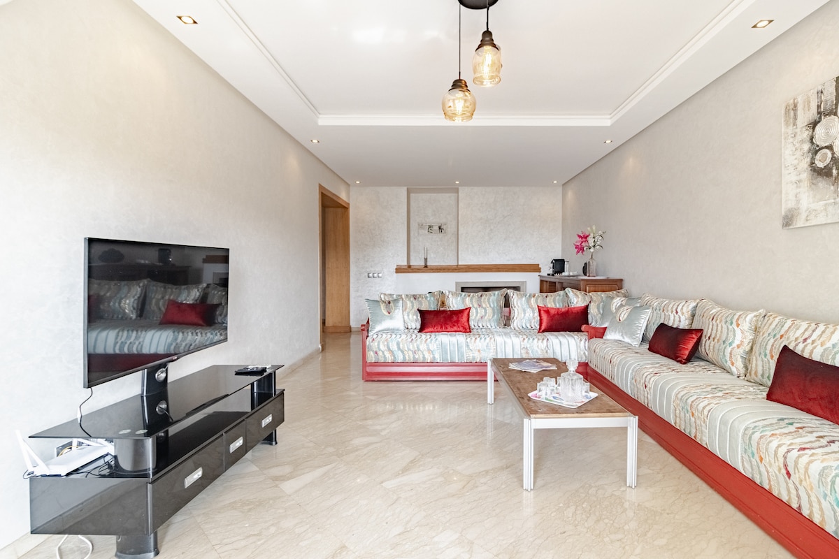 Goditi un appartamento confortevole e tranquillo con vista diretta sulla piscina, in un residence che offre accesso a più di 6 piscine. Vicino a tutti i servizi: – Panificio e negozio di alimentari (5 min) – Mohammedia (15 minuti) – Plage des Sablettes (12 min) – Bouznika (20 min) – Facile accesso all'autostrada Casablanca–Rabat Perfetto per coppie sposate, viaggiatori solitari o piccole famiglie in cerca di pace e comfort vicino al mare. Vieni a creare bellissimi ricordi a Magic House!