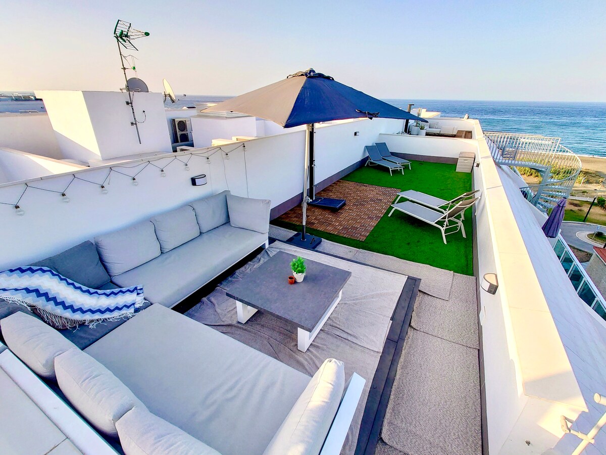Benvenuti a Penthouse Marinsa Beach, un attico elegante e lussuosamente arredato sulla soleggiata Costa del Sol. Questa casa vacanze unica offre tutto il necessario per un soggiorno rilassante e indimenticabile: una grande terrazza privata sul tetto con vista sul mare, servizi di lusso e una posizione perfetta a pochi passi dal mare, dalla spiaggia e dal lungomare.