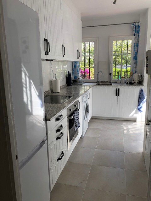 Benamara on the beachside in Estepona near San Pedro 2 bedroom/2 bath ground floor (No stairs at all) light bright apartment. It’s next to a huge park, it’s well equipped and comfortable with everything you need for a fantastic holiday with quality beds & furnishings. It has a small private garden which has sun ALL DAY.Easy free parking outside your gate with restaurants and bars Aldi supermarket within an easy walk.The beach is at the end of the street, with a nice walks along the promenade.