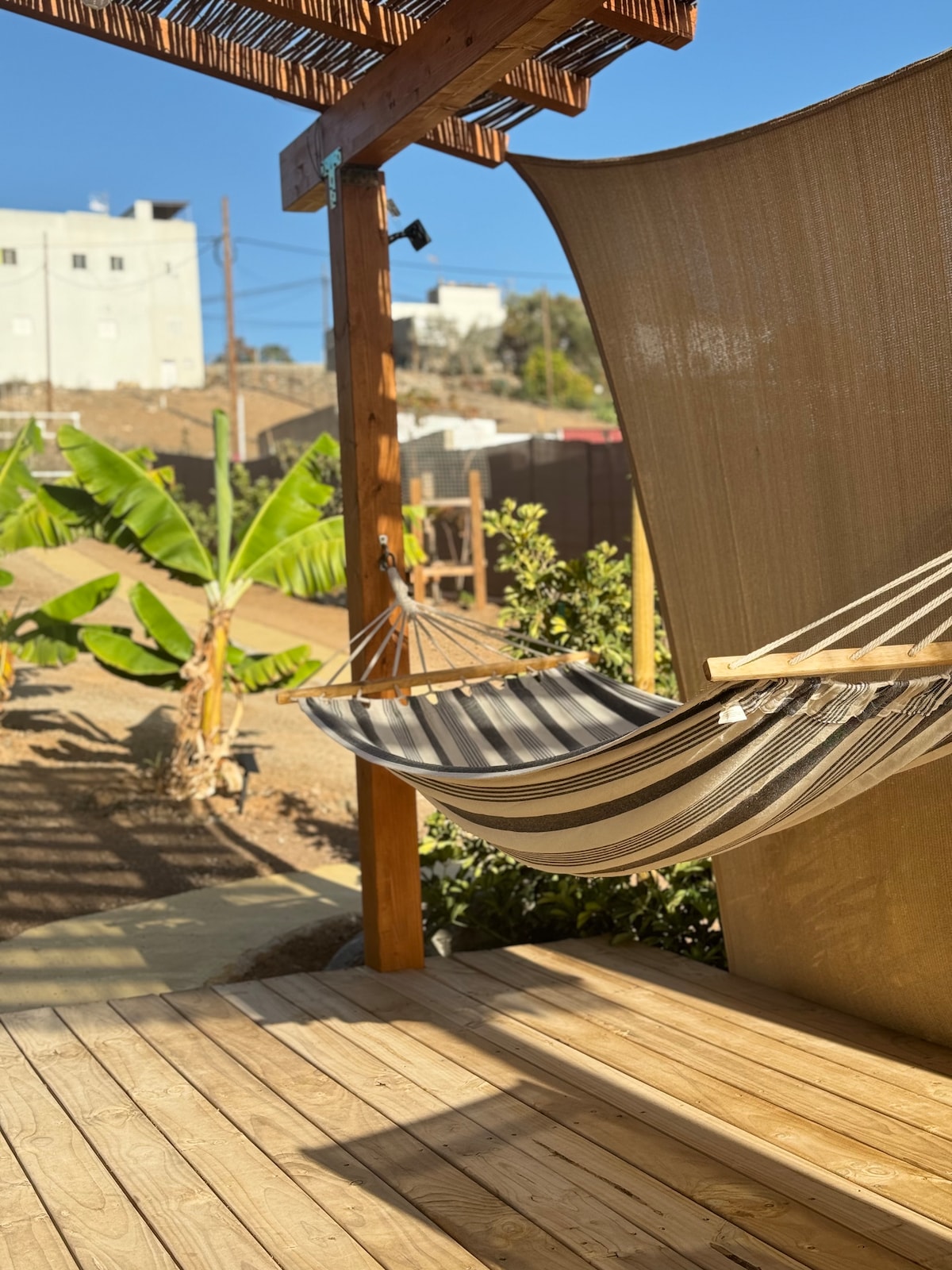 Innamorati di questo alloggio situato nel cuore della natura, con vista sul mare e sulle montagne. Rilassati nell'aria serena del sud di Gran Canaria. A soli 10 minuti di auto da Playa del Inglés. Con la tranquillità della natura e allo stesso tempo vicino alle spiagge, ai ristoranti e ai supermercati. Situato a Montaña la data alta, questo spazio è indipendente e intimo, ben attrezzato e preparato per soggiorni piacevoli e indimenticabili. Con una grande terrazza sotto un cielo di stelle.