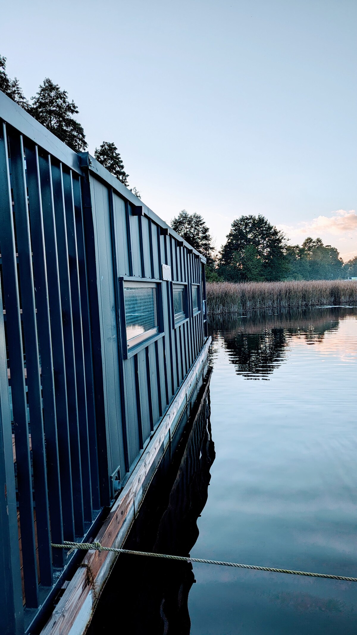 La Perla Nera con vista sull'acqua per Havel, inclusa una barca a motore, invita a trascorrere ore tranquille sull'acqua sul lago Röblinsee/Havel. Due camere da letto, riscaldamento a pavimento, una cucina attrezzata, forno a microonde, SMART TV e Wi-Fi offrono una grande vacanza con una porzione di avventura. Questa casa vacanze è la casa vacanze ideale e casa galleggiante sull'acqua. La guida della barca a motore non richiede patente. La barca a motore è a disposizione.