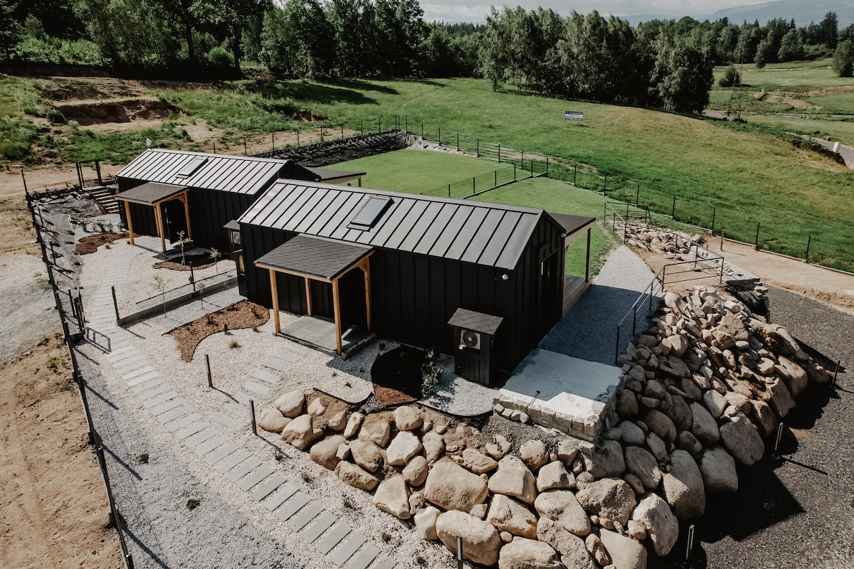 La vista della Sacra Tranquillità è: Paesaggi pittoreschi dei Monti Giganti: panorami mozzafiato che puoi ammirare dalla terrazza dei nostri cottage. Le montagne e la foresta creano paesaggi incredibili, perfetti per rilassarsi e fuggire dalla vita di tutti i giorni. Vicinanza alla natura: è perfetto per attività ricreative all'aperto, come escursioni a piedi, sci e ciclismo. Staniszów è un incantevole villaggio situato nel cuore dei Monti Giganti, nel Voivodato della Bassa Slesia.