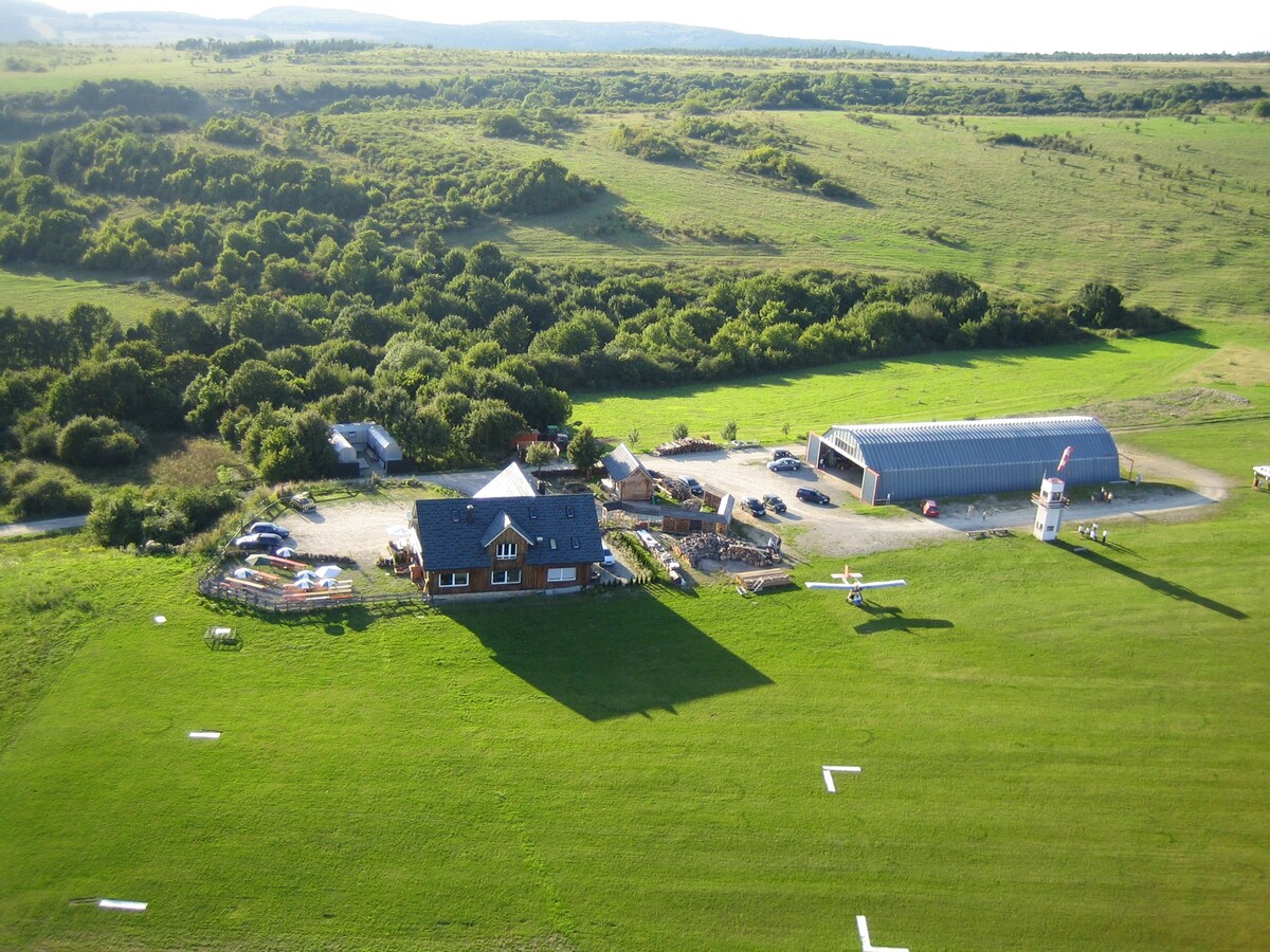 Vivi giornate fantastiche con noi all'aeroporto. Le nostre tre camere condivise con un totale di 14 letti e 16 posti letto sono perfette per un viaggio di gruppo o di famiglia. Osserva le stelle, goditi le avventure del nostro aeroporto o fai escursioni nella bellissima regione della Rhön e della foresta della Turingia. La colazione può essere richiesta e viene servita nel nostro caffè.