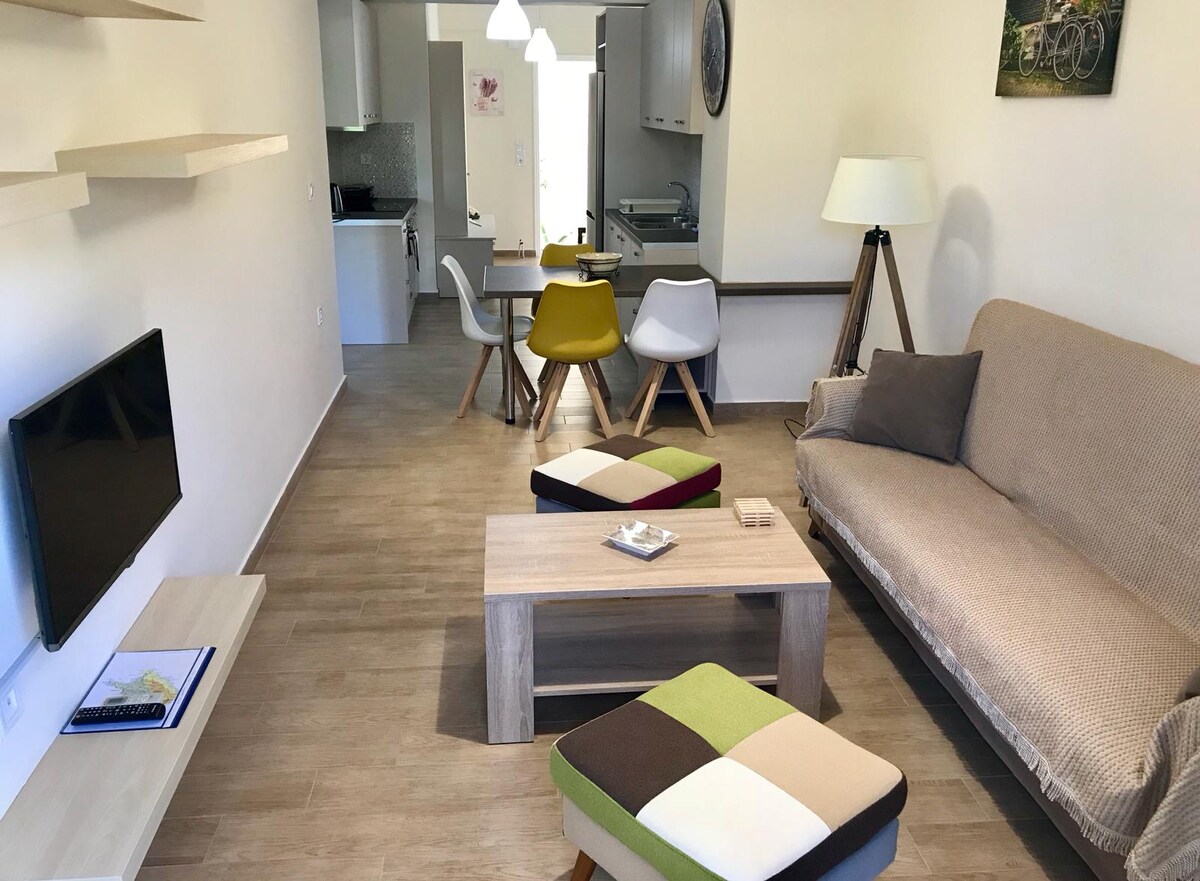 Un appartamento al primo piano recentemente ristrutturato nel cuore della città di Zante. A solo 1 minuto a piedi dalle piazze centrali di San Marco e di Salomone , in una strada tranquilla, ma accanto a tutti i comfort. L'appartamento ha una camera con letto matrimoniale, una seconda camera con divano letto, cucina completamente attrezzata, bagno, smart tv, aria condizionata. La spiaggia organizzata di Krioneri (Plaz EOT)è a soli 5 minuti a piedi. Amerai il nostro appartamento a causa del quartiere!