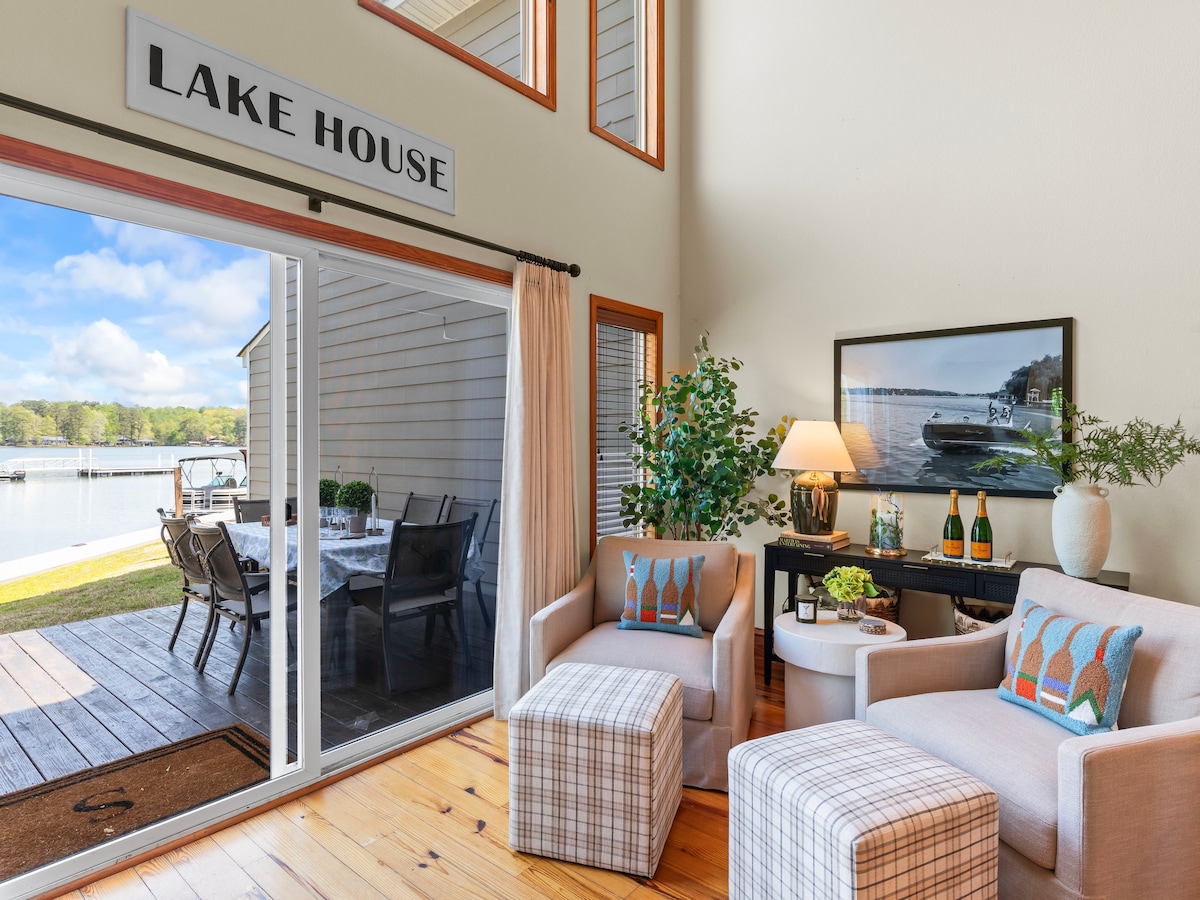 Located on the Montgomery side, this amazing Lake House sits on a flat lot offers 450 feet of water front. It is very private. There are many outdoor areas like the gazebo, two docks, fire pit, and a floating dock. You'll love the coziness of the large fireplace and the open floor plan with high ceilings. You're 5 minutes from Children's Harbor and 10 minutes from Catherine's Market and The Springhouse. Make sure to make a reservation for Springhouse.