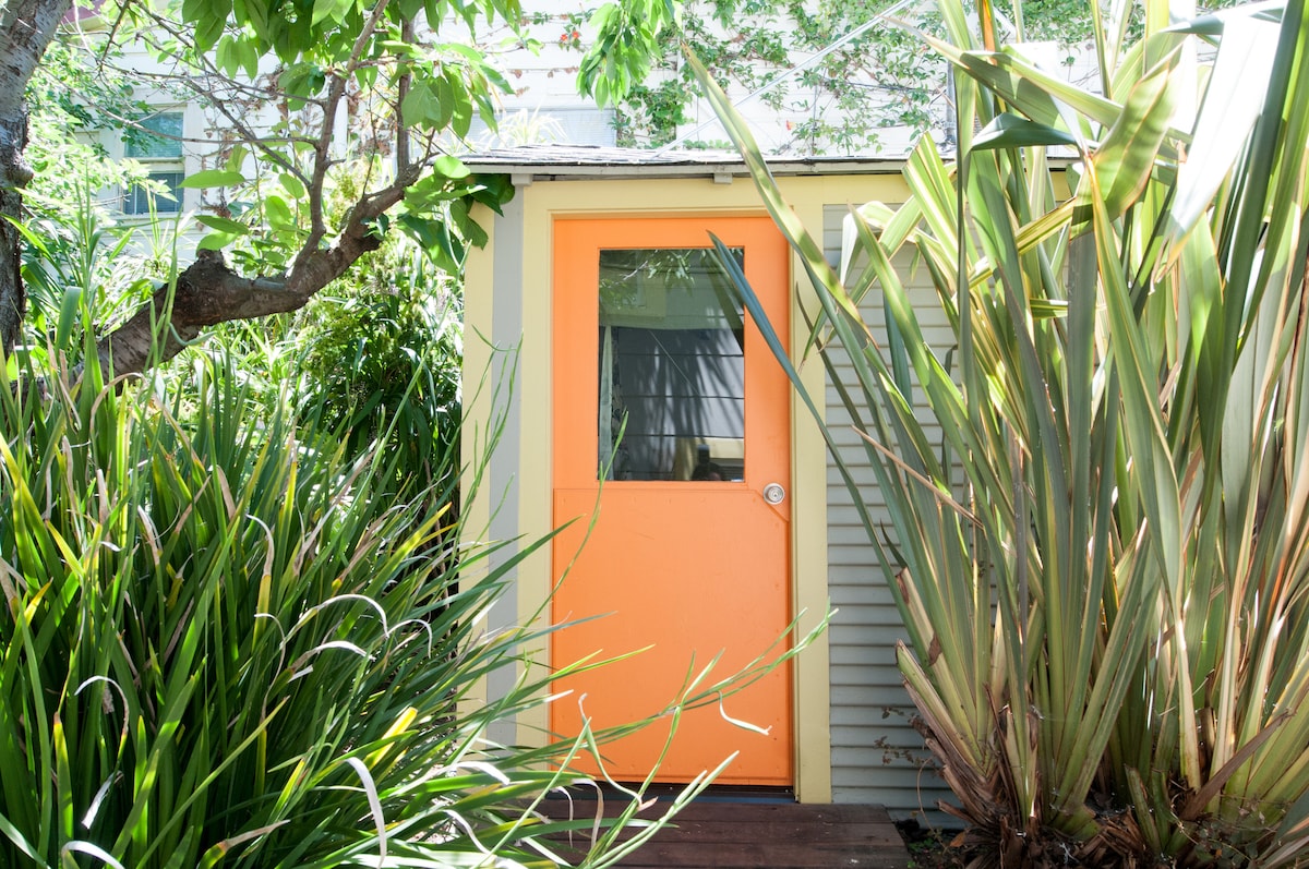 Stanza privata tranquilla, di buon gusto e pulita, in un giardino con ingresso privato e servizi igienici e doccia esterni (dietro una recinzione). "Glamping"! Nella tranquilla North Oakland. Invia i nomi COMPLETI quando richiedi una prenotazione. Quartiere percorribile a piedi, giardino privato. La camera è un paradiso per dormire! NOTA BENE: il check-in per la prima notte è dalle 16:00 alle 21:00, NON sono consentiti check-in tardivi (abbiamo un accordo con i nostri vicini) e non è consentito l'accesso alla cucina. Ti invitiamo a chiedere informazioni sul check-in anticipato, che è spesso disponibile.
