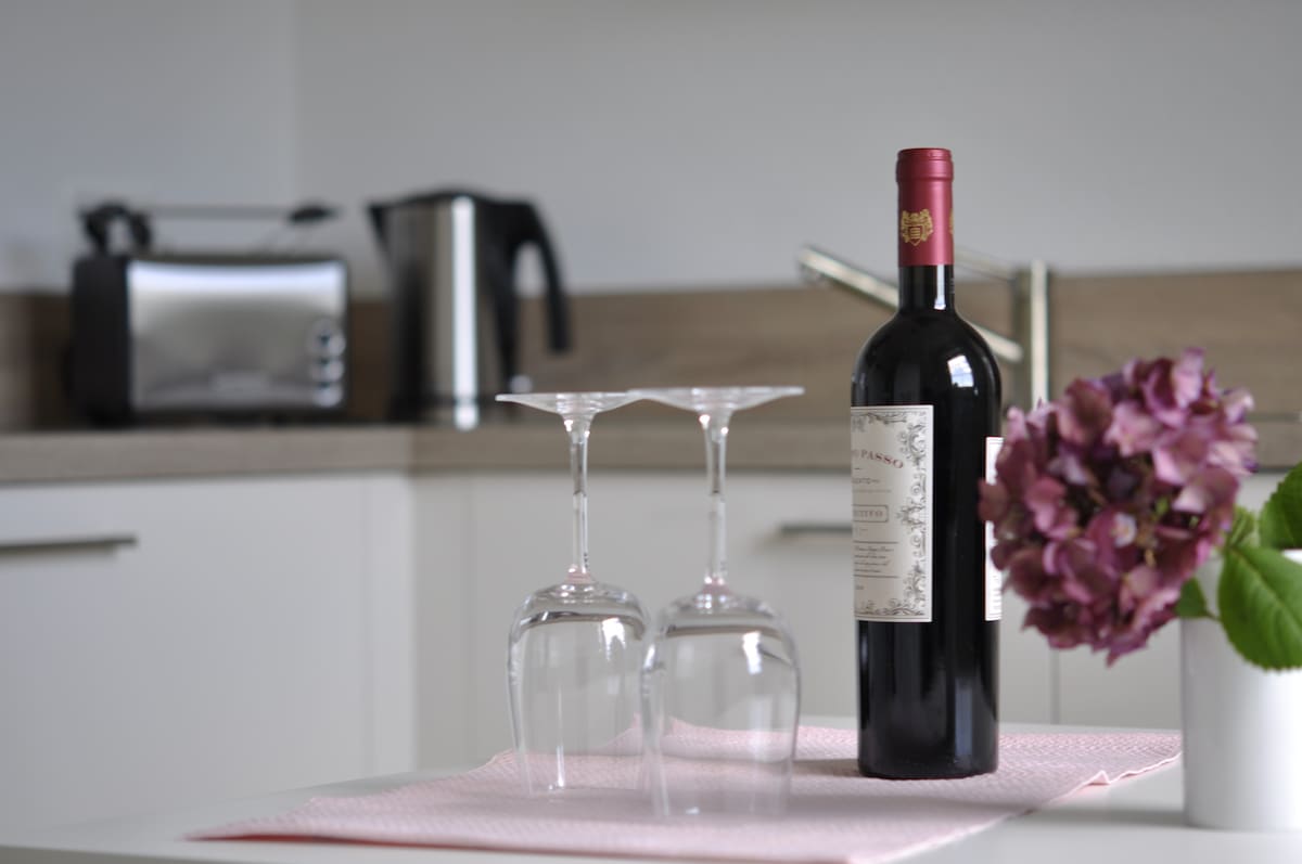 Su circa 25 mq troverete un accogliente appartamento con zona giorno/notte combinata, una piccola cucina e un bagno con doccia. L'appartamento è adatto per una o due persone o anche per soggiorni brevi con bambini piccoli. Un lettino da viaggio può essere fornito su richiesta. Il nostro trattamento all-inclusive comprende strofinacci, asciugamani e lenzuola fresche. Se si effettua un soggiorno più lungo, si riceverà naturalmente su richiesta un altro giro di asciugamani e strofinacci puliti.
