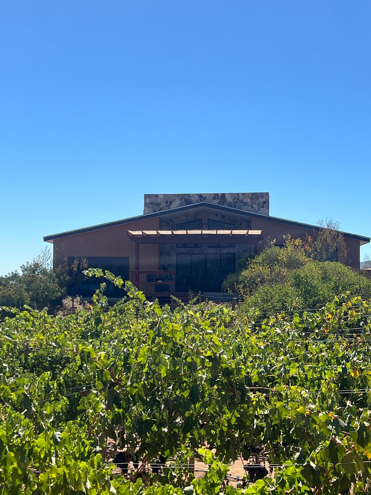 Desconecta de tus preocupaciones en este espacio amplio y sereno, alójate en esta casa con una vista increíble entre viñedos, disfruta de la terraza amplia con asador y fogatero, en la sala cuenta con proyector para esas noches de películas. Estamos situados en valle de Guadalupe A sólo 10 minutos de los restaurantes y vinícolas más reconocidos de la región. Además, tu reserva cuenta con desayuno incluido Don Tomas, a solo 4 minutos de su cabaña.