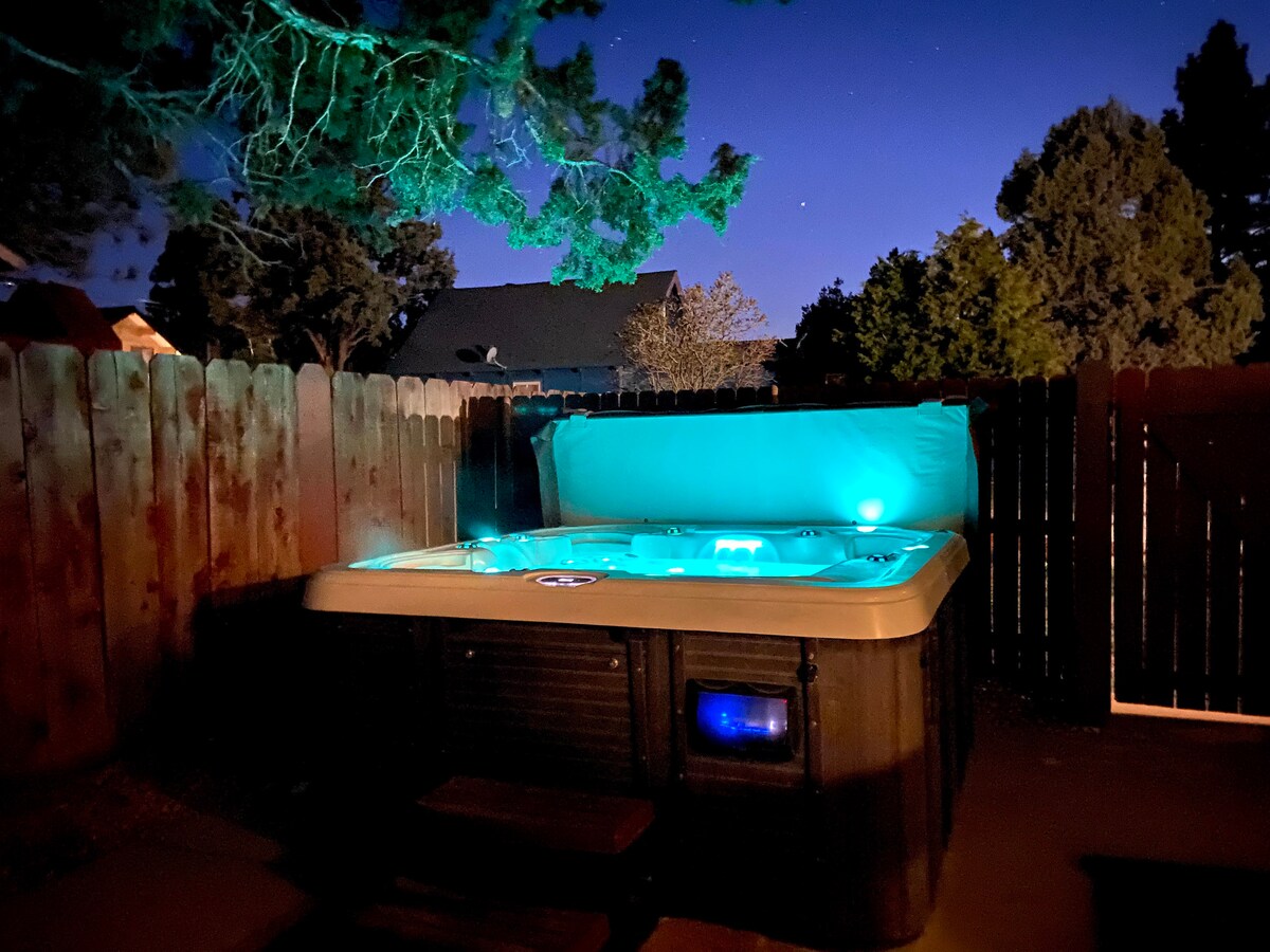 Porta la tua famiglia e i tuoi amici in questo elegante rifugio situato a pochi isolati dai sentieri locali. Con un cortile completamente recintato, focolare a gas, barbecue a gas, zona salotto ombreggiata e tavolo da picnic. Questo chalet dispone di una cucina completamente attrezzata per cene e pasti quotidiani. Con TV in ogni stanza, potrai avere del tempo per te per fare le tue cose. Amiamo i cani e troverai tutto ciò di cui hai bisogno per farli sentire a casa. Ciotole, letti, coperte e giocattoli. Wifi, Netflix, Showtime, Disney, Amazon e tanti giochi per divertirsi!