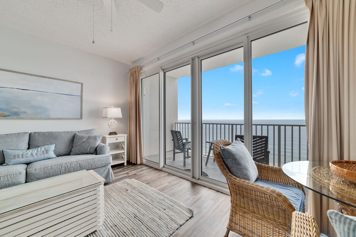 ASK about DISCOUNT rate for monthly stay in January and February 2026. DON'T FIGHT THE CROWDS for space on the beach! Unwind in our comfortable 4th floor Beach Front "Slice of Paradise" with private beach. The balcony offers unobstructed, gorgeous views of the Gulf and the beautiful white sands of Perdido Key. Soak up the sun as you kick back on the balcony and count the dolphins while being lulled by the sound of the waves and the salt air breeze. Recently UPDATED-New photos coming soon!