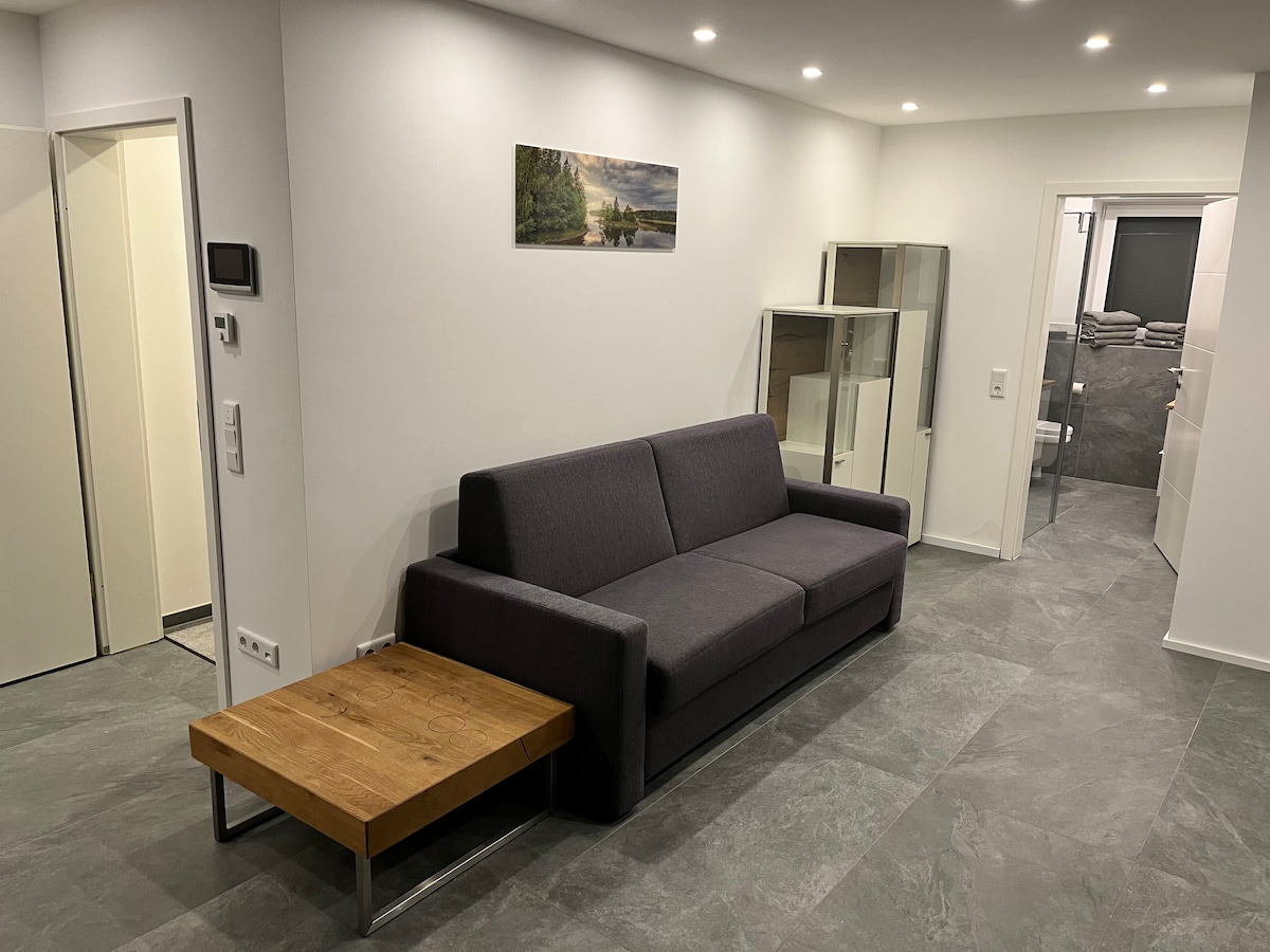Il numero minimo di ospiti è 2. Sdraiati e rilassati nel nostro tranquillo appartamento di 65 mq con riscaldamento a pavimento e un ingresso privato. Mezzi di trasporto come autobus, treno, S-Bahn sono raggiungibili a piedi. A disposizione: Camera da letto con un letto matrimoniale 1,80m/2m. Posti letto disponibili per altre 5 persone. Un ampio soggiorno con una Smart TV e una scrivania. Cucina attrezzata con frigorifero, forno a microonde, macchina per il caffè, bollitore e piano cottura. ZONA RESIDENZIALE TRANQUILLA!