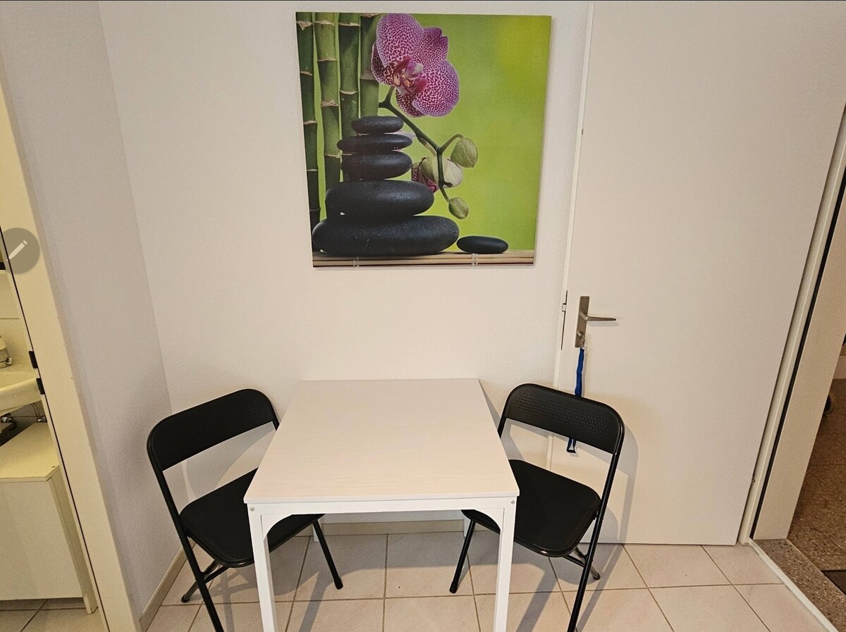 Questo alloggio elegante e tranquillo è perfetto per una o due persone. Appartamento perfettamente attrezzato, nelle immediate vicinanze di Basilea. Situato non lontano dalla fermata del tram, si arriva a Basilea molto facilmente utilizzando tutti i mezzi pubblici con biglietti gratuiti. Una terrazza privata, per le vostre colazioni in estate e una camera spaziosa per dormire bene in un letto di 160 cm. Negozi, panetterie e ristoranti si trovano a circa 500 metri, il Goetheanum a 1,9 km.