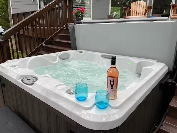 Seduto su 25 acri, troverai Black Pines, una lussuosa casa privata a tre piani con vista sul lago, una grande terrazza per feste, una vasca idromassaggio e una sala giochi nel seminterrato che include un tavolo da biliardo. Sorseggia un caffè o fai yoga con l'alba sul ponte avvolgente, arrostisci i marshmallow vicino al focolare, rilassati dopo una giornata sul lago nella vasca idromassaggio o rilassati con un buon libro di fronte alla stufa a legna. Indipendentemente dalla stagione, questa è la fuga perfetta.
