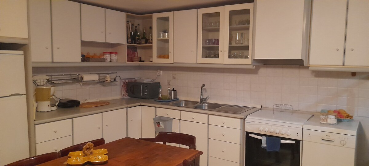 Accogliente casa di campagna in un posto tranquillo (posto unico per vacanze tranquille e private lontano da rumorosi locali notturni e bar). La casa è situata vicino alla famosa spiaggia di Agia Paraskevi e vicino alla spiaggia privata (20m a piedi) per vacanze estive uniche. La spiaggia privata è piena di creature marine (pesci, ecc.). Offriamo esperienza di pesca con la nostra barca da pesca, o esplorazione subacquea. Anche la spiaggia privata è ideale per nuotare. Cucina completamente attrezzata, televisione, wifi, aria condizionata. (AMA) 00000275847