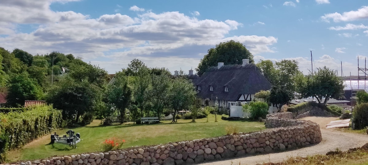 Antica casa a graticcio idilliaca con vista sul mare, spiaggia privata, tranquillo giardino indisturbato, un accogliente padiglione e due stufe a legna per i periodi freddi. Portare con sé lenzuola e asciugamani. Pulizia inclusa, ma deve essere effettuata una pulizia grossolana. Vicino a boschi e buoni percorsi per escursioni a piedi o in mountain bike a Svanninge Bakker. Buon divertimento - godetevi la foresta, la spiaggia e l'acqua di Dyreborg - non c'è posto migliore a Sydfyn. Non è consentito organizzare feste o altri eventi importanti.