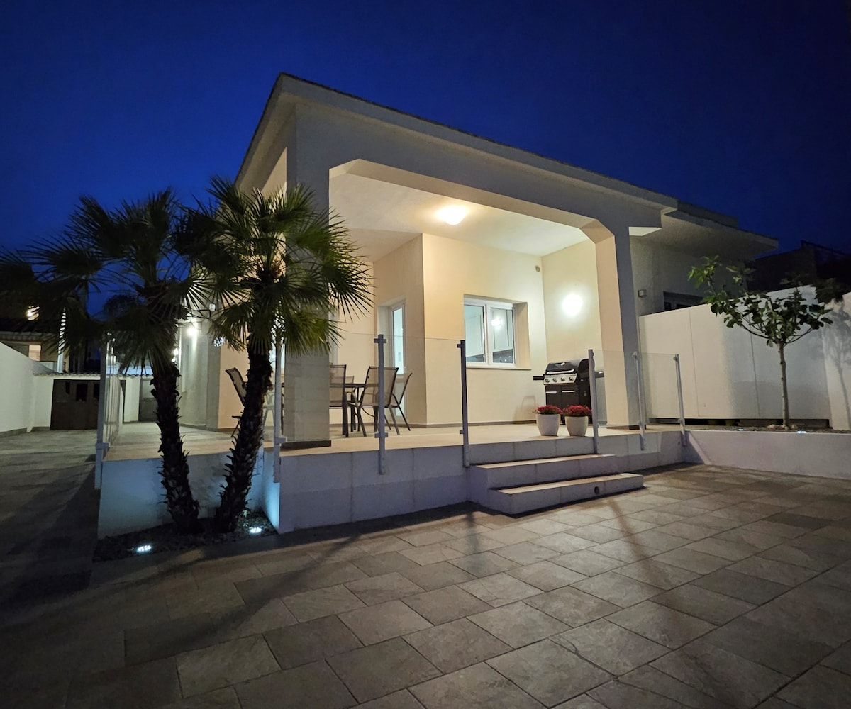 La villa è situata nella città di Avola famosa in tutto il mondo per la mandorla e il Nero d'Avola, a 120 mt dal mare. Casa indipendente immersa nel verde e nella tranquillità più assoluta. Con ampi spazi esterni, ha una superficie abitabile di 52 mq. E’ composta da camera da letto matrimoniale con clima elettrico, ampia cucina/soggiorno con due letti singoli, clima elettrico e TV, 1 bagno completo con doccia, veranda con arredi e barbecue. Posto auto interno privato non coperto.