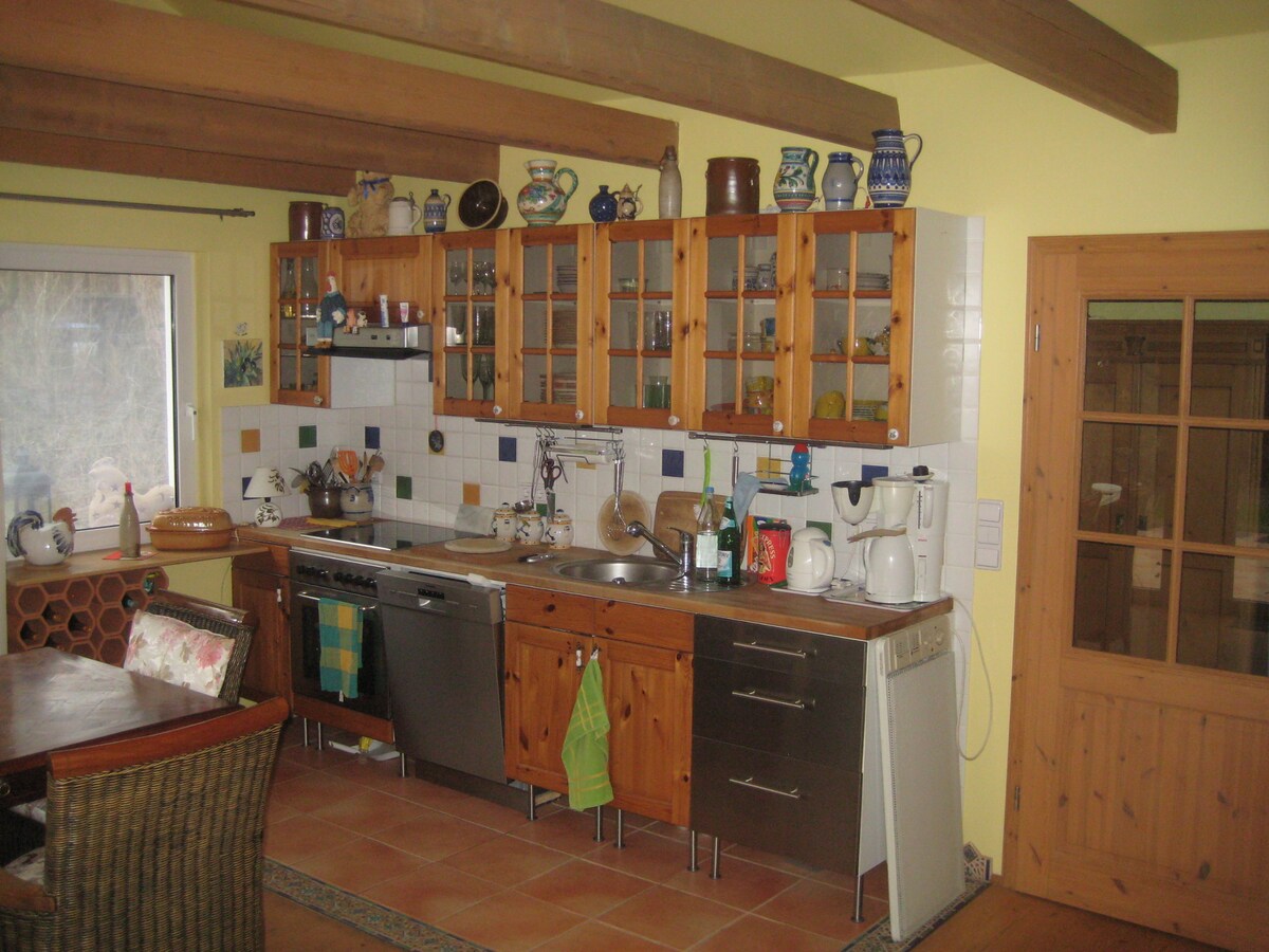 Offriamo in affitto il nostro piccolo appartamento in stile bungalow nella nostra proprietà nella tranquilla bordicke alla periferia di Berlino. Si tratta di un appartamento di 1.5 locali con un bagno e una cucina attrezzata. Il nostro bungalow invita al relax assoluto grazie alla sua posizione ai margini del bosco e del lago Grünefelder See, raggiungibile a piedi. Ma anche Berlino sarebbe raggiungibile in treno in circa 15 minuti.