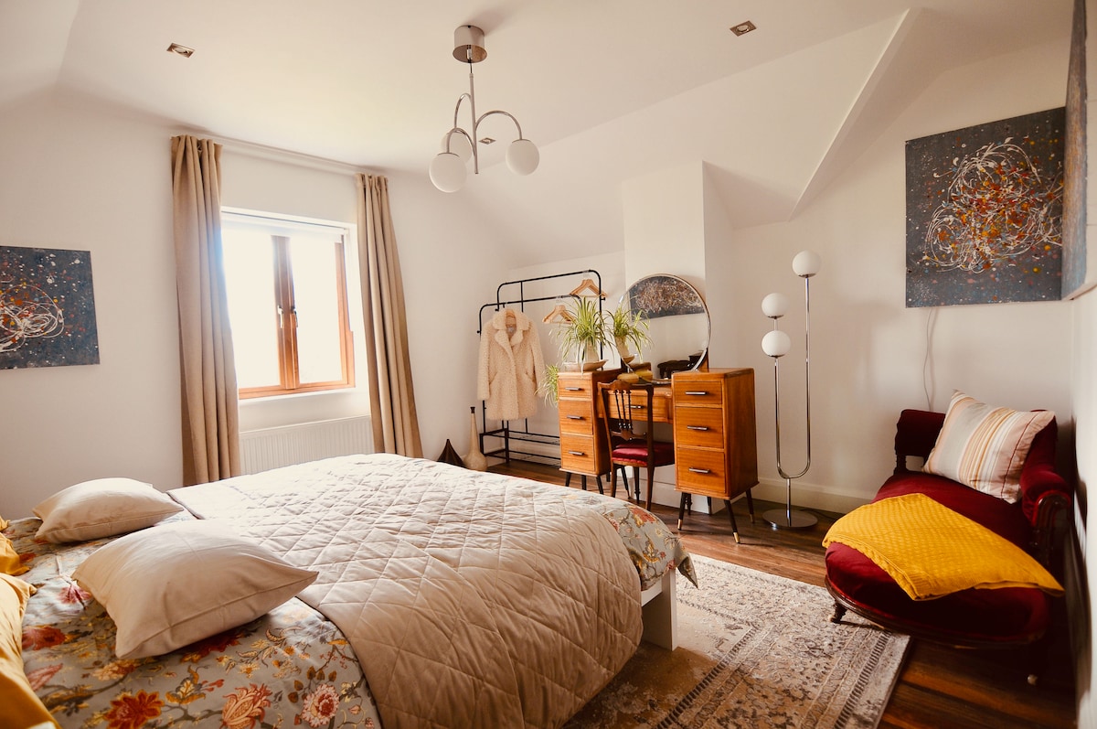 Apparsa su The Irish Times e sui siti web di costruzioni indipendenti e sostenibili, questa proprietà unica è incentrata sulla cultura tradizionale irlandese, sul patrimonio e sull'artigianato appassionato. Tranquilla, accogliente e romantica, vanta molte caratteristiche autentiche (pareti in pietra, camino aperto, travi a vista) che ti riporteranno nella vecchia Irlanda! Include comfort moderni per il massimo comfort. Ottima posizione centrale in una splendida campagna, ideale per esplorare le gemme dell'Irlanda. Questo non è solo un alloggio: è un'esperienza...