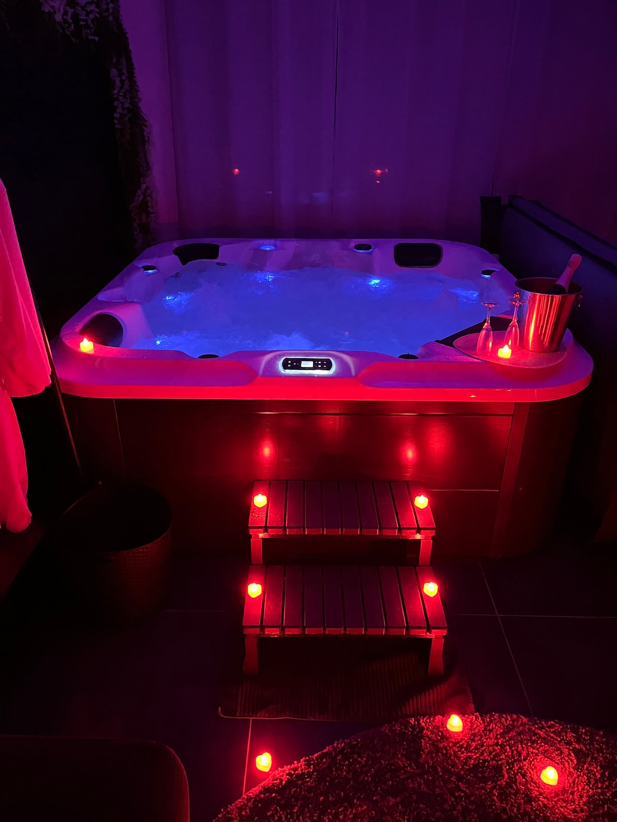 Love room situata nel cuore della campagna a due passi dalla città in un ambiente sobrio e accogliente. Riunisce tutti gli ingredienti per vivere un momento indimenticabile. Il suo ambiente accogliente crea un'atmosfera morbida e soffusa. È dotato di un'ampia spa privata, una cucina completamente attrezzata una grande camera da letto con barra del polo dance. Un bagno con doccia italiana. Una terrazza privata con pergolato bioclimatico. È provvisto di parcheggio privato custodito.