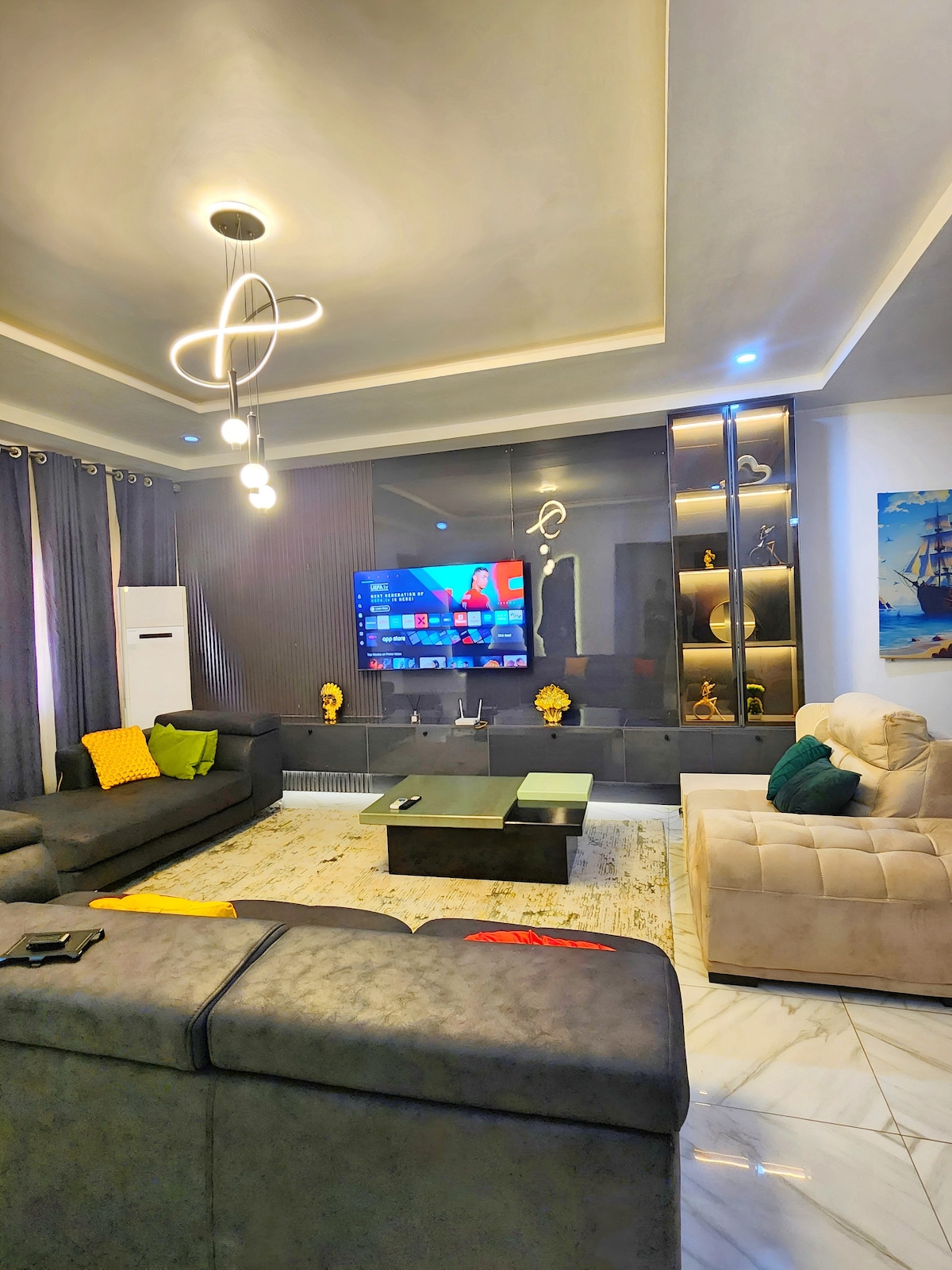 Appartamento con 2 camere da letto squisitamente arredato CARATTERISTICHE: ✅Tennis da tavolo ✅Snooker ✅Secuirity ✅Pulizie giornaliere ✅ 24 ore di luce/acqua pulita ✅ Acqua pulita Connessione a Internet✅ 24 ore su 24 televisori intelligenti ✅cinematografici ✅Camere con bagno privato ✅ Cucina attrezzata . ✅Area relax. ✅TV via cavo generatore ✅intelligente ✅cucina/ posate ✅frigoCongelatore 📍 wuse 2 -Abuja PS5, GIOCHI VR, shopping /chef privato (su richiesta)