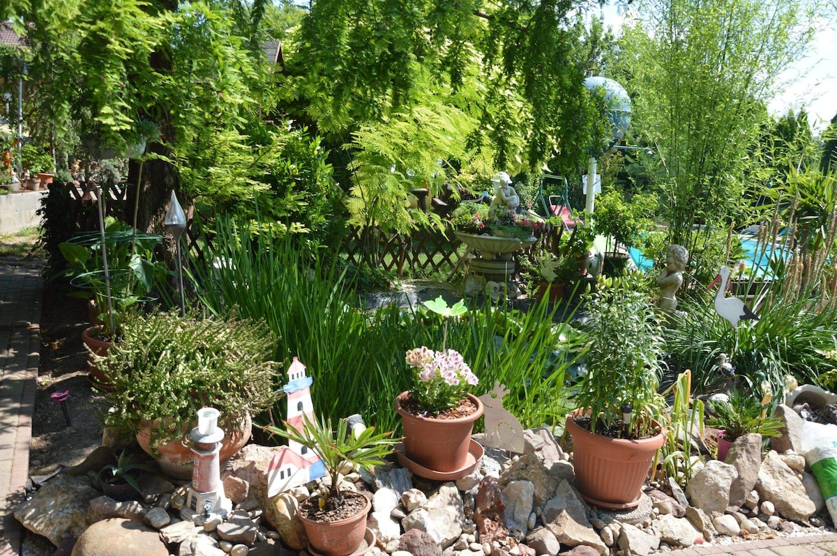 Nelle vicinanze si trovano la stazione ferroviaria e la stazione degli autobus. La nostra spiaggia all'aperto è stata rinnovata nel 2019, si trova a circa 5-6 minuti a piedi, con un blocco d'acqua, un parco giochi e un campo da pallavolo. Sulla spiaggia, una tenda protegge i piccoli bagnanti. Il supermercato abc è a 400 m, la pista ciclabile è a circa 30 m dalla casa. È possibile noleggiare 5 biciclette! A 1,5 km si trova un belvedere su una parete di loess, da cui si può ammirare il bellissimo lago Balaton e vedere fino a Tihany. A 600-800 m ci sono molti ottimi ristoranti lungo la riva e nel villaggio. Vi aspetto tutti con affetto.