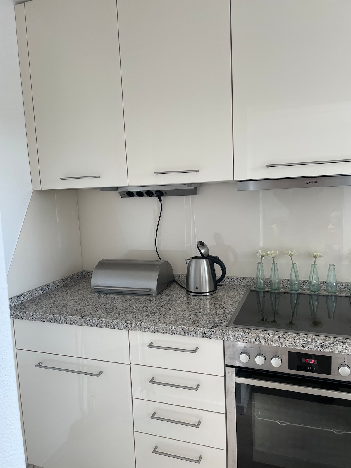 This recently renovated and stylishly furnished apartment leaves nothing to be desired. The apartment is very well located, with the nearest tram stop just a 10-minute walk away. From there, it takes another 10 minute ride to reach the city center (main train station/Stachus). The Olympic Park and Nymphenburg Canal are also within easy walking distance. The apartment is equipped with a modern kitchen incl. accessories, a stylish bathroom, a king-size bed, balcony, and a bright living area.