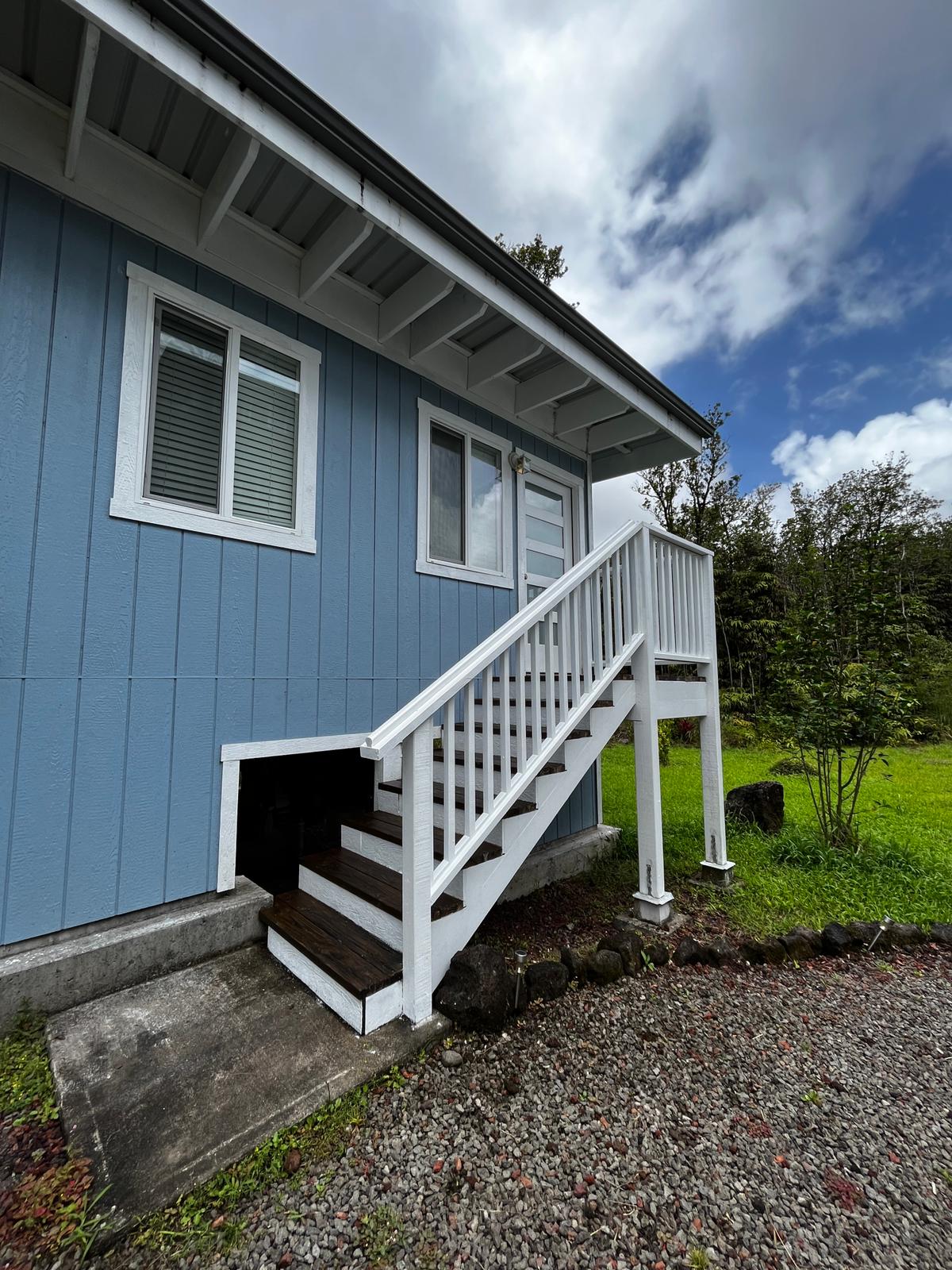 Vista sul Mauna Kea. 183 metri di altitudine. Letto matrimoniale e divano al primo piano. Tavolo. Loft con letto futon completo. Tende oscuranti. Le lenzuola verranno cambiate dopo una settimana in caso di soggiorno prolungato. Tassa ☆hawaiana INCLUSA. Teli mare a disposizione. Caffè e tè del mattino inclusi. Abbiamo sistemi UV per garantire la sicurezza dell'acqua. Lavatrice nella casa principale (gratuita) Parco nazionale dei vulcani a 40 minuti a ovest, Mauna Kea a 1 ora e mezza a nord-ovest, spiagge di Hilo a 30 minuti a est. Costo aggiuntivo di 15 $ per ogni persona oltre i 2 anni.