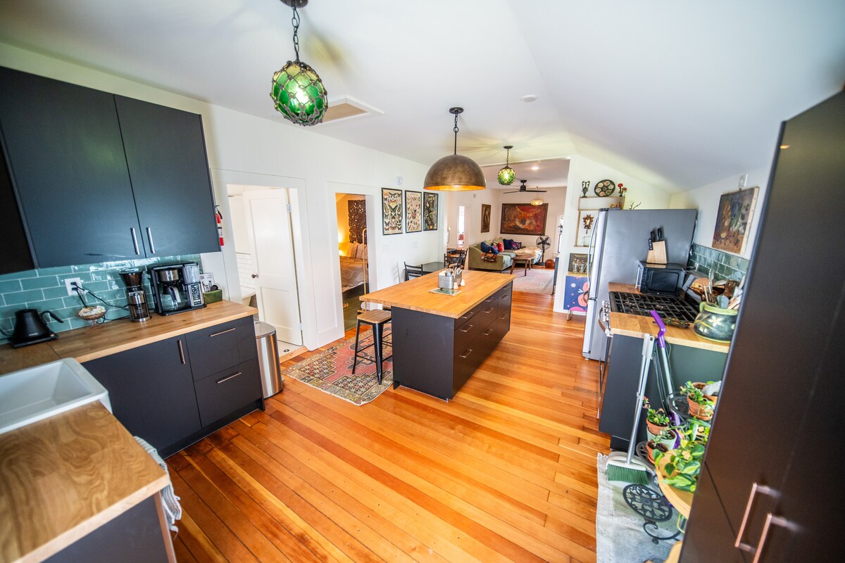 L'intero gruppo si sentirà a proprio agio in questo spazio spazioso e unico. Si tratta di un appartamento arredato in una chiesa ristrutturata. Una camera da letto con un letto matrimoniale e un'ampia cabina armadio al piano inferiore. Una scalinata conduce a un loft superiore con tre letti singoli. Sono disponibili anche un lettino e un seggiolone. Gli animali domestici sono i benvenuti. Situato a pochi passi da Sylvan Park, che ha un meraviglioso parco giochi. Un sacco di spazio sul bancone per un incontro.