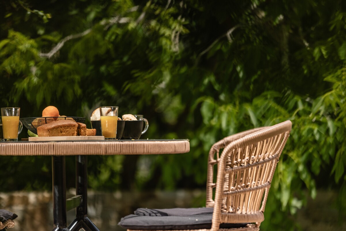 Apri le persiane blu mare e lascia entrare la brezza rinfrescante, poi prepara uno spuntino sul piano di lavoro della cucina in cemento urbano in un rifugio ventilato sul lungomare. Sali sulla spaziosa veranda alberata per sorseggiare un drink al tramonto con vista incontrastata sull'oceano! L'appartamento si trova vicino a una spiaggia sabbiosa, dove potrai fare una nuotata mattutina, e a 2 minuti a piedi dal centro di Naousa e dalla sua piazza principale. Negozi, ristoranti, bar e club sono raggiungibili a piedi, ma la zona è molto silenziosa e tranquilla!
