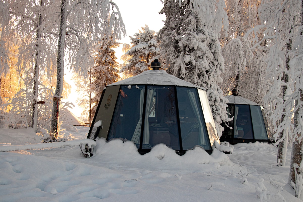 Scopri Aurora Hut, uno splendido Igloo di classe a 180 gradi con la migliore possibilità di assistere all'aurora boreale! Il nostro esclusivo sistema di allarme Aurora dotato di fotocamera ti sveglierà ogni volta che apparirà l'aurora boreale, assicurandoti di non perdere questa magica esperienza. letto per due persone. Il tuo soggiorno include l'accesso a saune e nuoto sul ghiaccio. Accesso a docce e servizi igienici 24 ore su 24 per un maggiore comfort. Comodamente situato a soli 3,5 km dal centro città, 4,5 km dall'Aeroporto di Rovaniemi e 4km dal Santas Village.