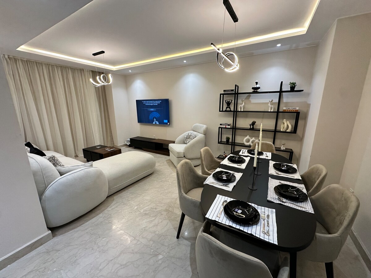 Ti diamo il benvenuto nella tua casa a Sheikh Zayed!✨ Goditi il tuo soggiorno in questo moderno appartamento con 2 camere da letto completamente arredato nel cuore di Sheikh Zayed City. 🌆 5 minuti — al centro commerciale Espana Plaza e al centro commerciale The Gate. 7 minuti — per Arkan Mall e Capital business park. 10 minuti — per Mall of Egypt e Mall of Arabia. 25 minuti — alle Piramidi e a Zamalek. Cosa riceverai: •🛏️ 2 comode camere da letto. •🛋️ Internet ad alta velocità con TV da 65 pollici •🍳 Una cucina completamente attrezzata •🌿 Il tuo giardino privato • ❄️ Aria condizionata