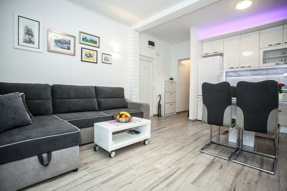 Stylish and thoughtfully designed apartment in a quiet, safe street, just a 5–8 min walk to Split’s Old Town and Bačvice beach. Compact yet fully equipped with everything you need – heated floors, A/C in every room, washer/dryer and more. Perfect for couples or small families. Everything is within walking distance, so most guests don’t need a car. ✔ 5–8 min walk to Old Town & beach ✔ Quiet, safe neighborhood ✔ Stylish, fully equipped space ✔ Heated floors & washer/dryer ✔ A/C in every room