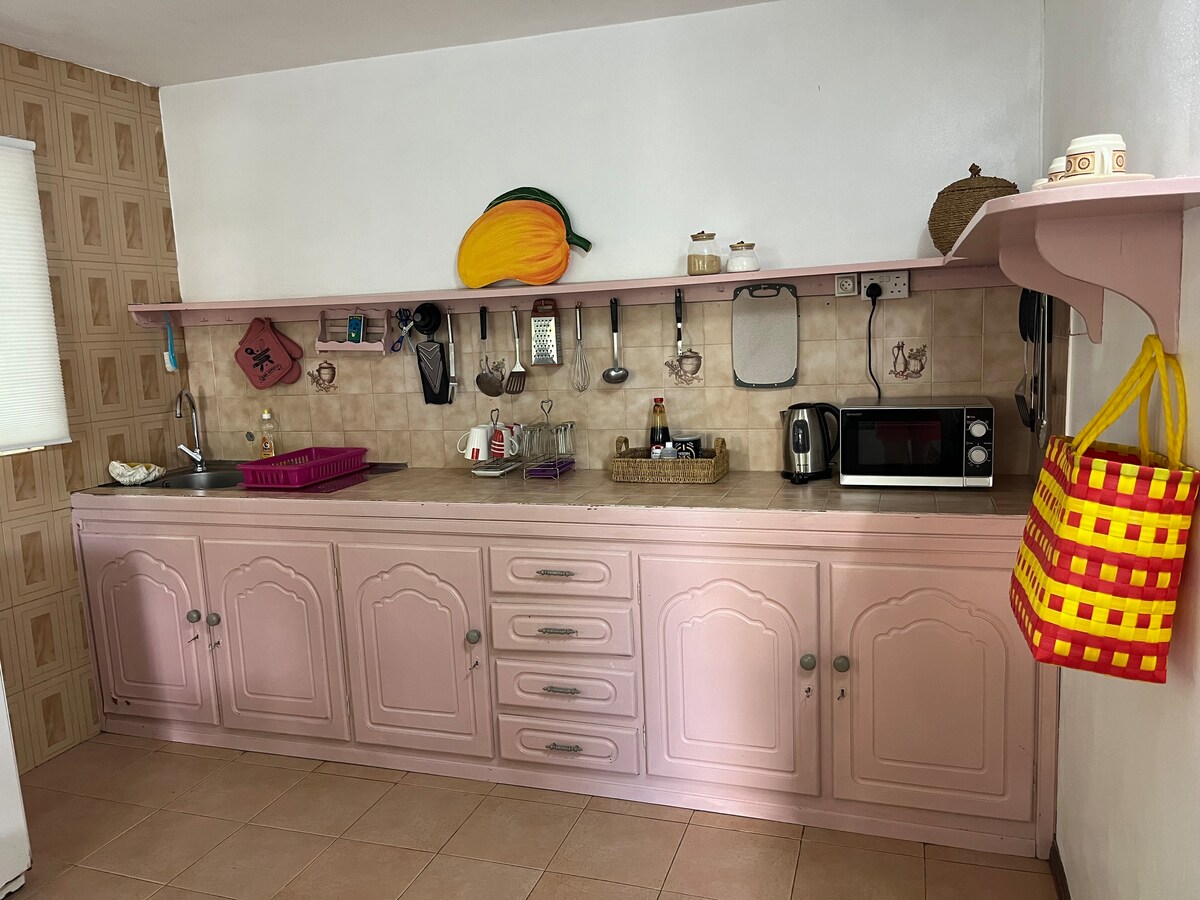 Entire place is yours Free Parking on premises Peaceful environment Garden access Pressure washer for car wash Netflix Local tv Tv's in all bedrooms and living room Ps4 console with access to remote to ps5 Computer for Excursion reservation fully equipped kitchen Ceiling fan and Ac in all bedrooms and common areas board games 15mins drive to Super U supermarket and food court Outdoor sitting area laundry room