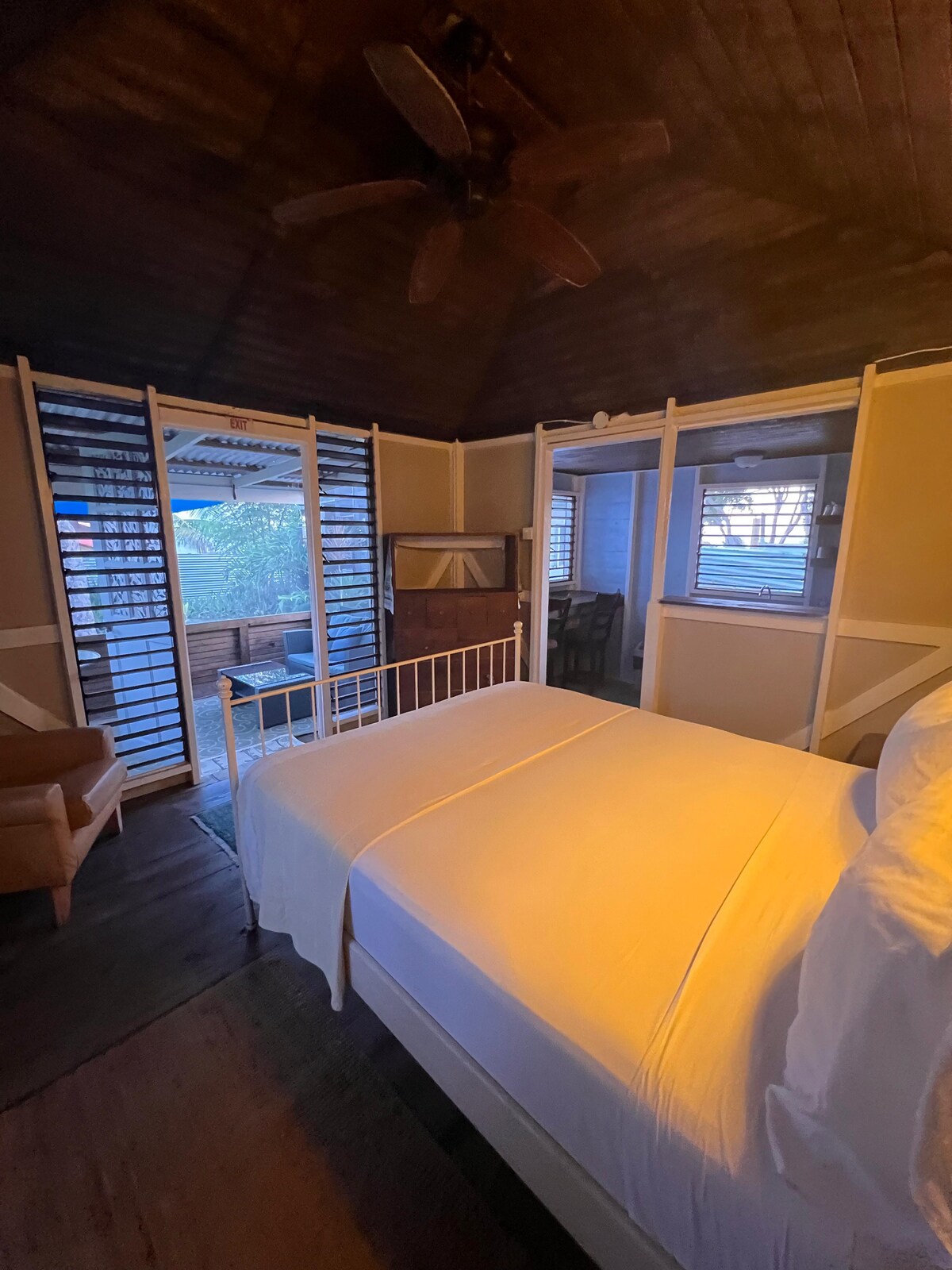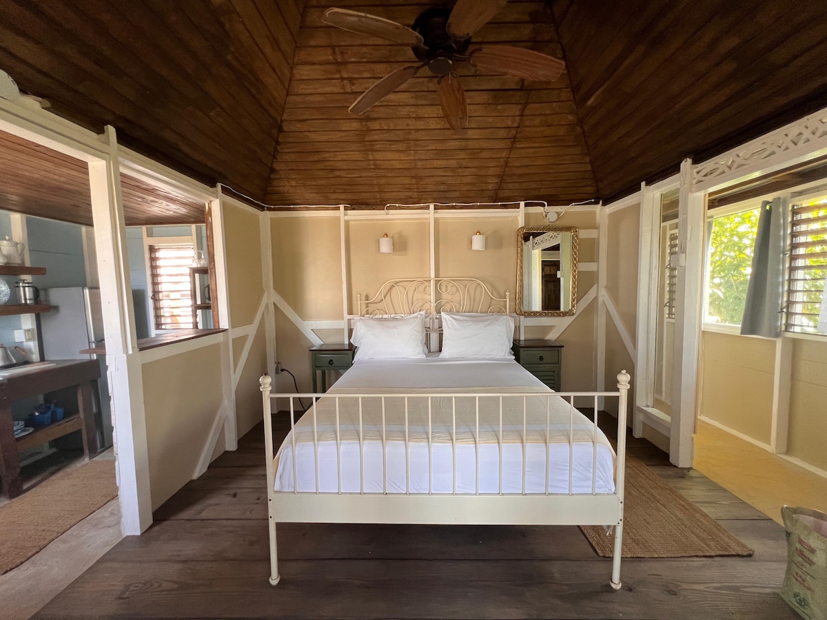 Le cabine sono realizzate in uno stile tradizionale e rustico. Sono dotate di un letto matrimoniale con materasso pillow-top e di un ventilatore. Siamo in posizione centrale e a soli 150 metri dalla spiaggia. Letteralmente a pochi passi. Puoi sdraiarti sull'amaca e rilassarti sotto l'albero che porta il fiore nazionale, il Lignum Vitae, e ascoltare il cinguettio degli uccelli. Siamo situati in posizione ideale, lontano da occhi indiscreti e a pochi passi da ristoranti e negozi.
