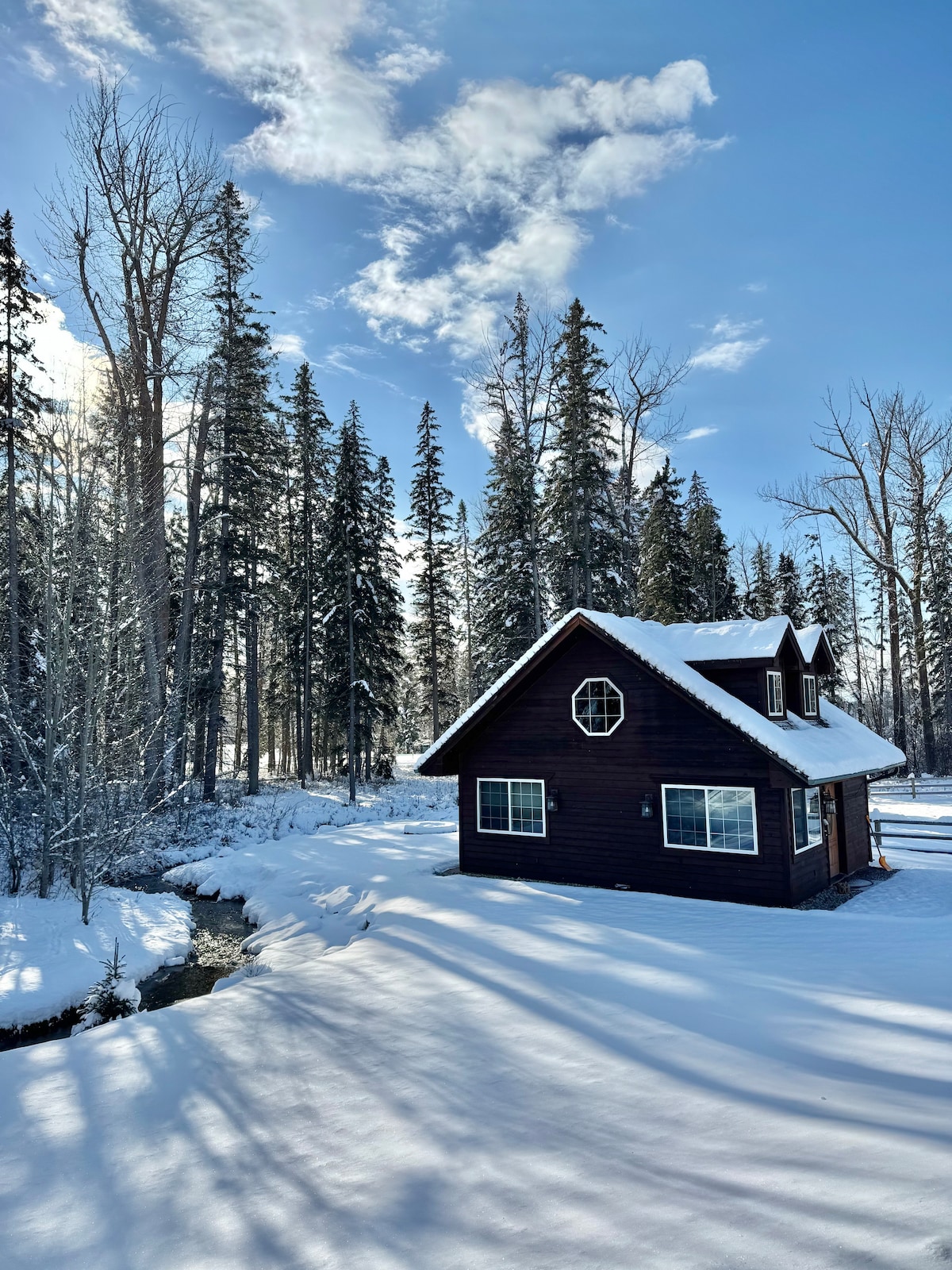 Benvenuto alla Rose Creek Farm, la tua casa lontano da casa in Montana! Goditi un bellissimo appartamento con 2 letti e 2 bagni nella nostra fattoria di 23 acri nella Flathead Valley. Situata in posizione centrale tra Kalispell e Bigfork, la fattoria si trova a soli 15 minuti a nord di Flathead Lake e a 40 minuti circa dal Glacier National Park e dalla stazione sciistica di Whitefish. Goditi lo splendore del Montana in ogni stagione! Rilassati e distenditi nella nostra fattoria con ampie viste sul fiume Flathead, vasca idromassaggio, sauna, braciere, altalene e tramonti a bizzeffe!