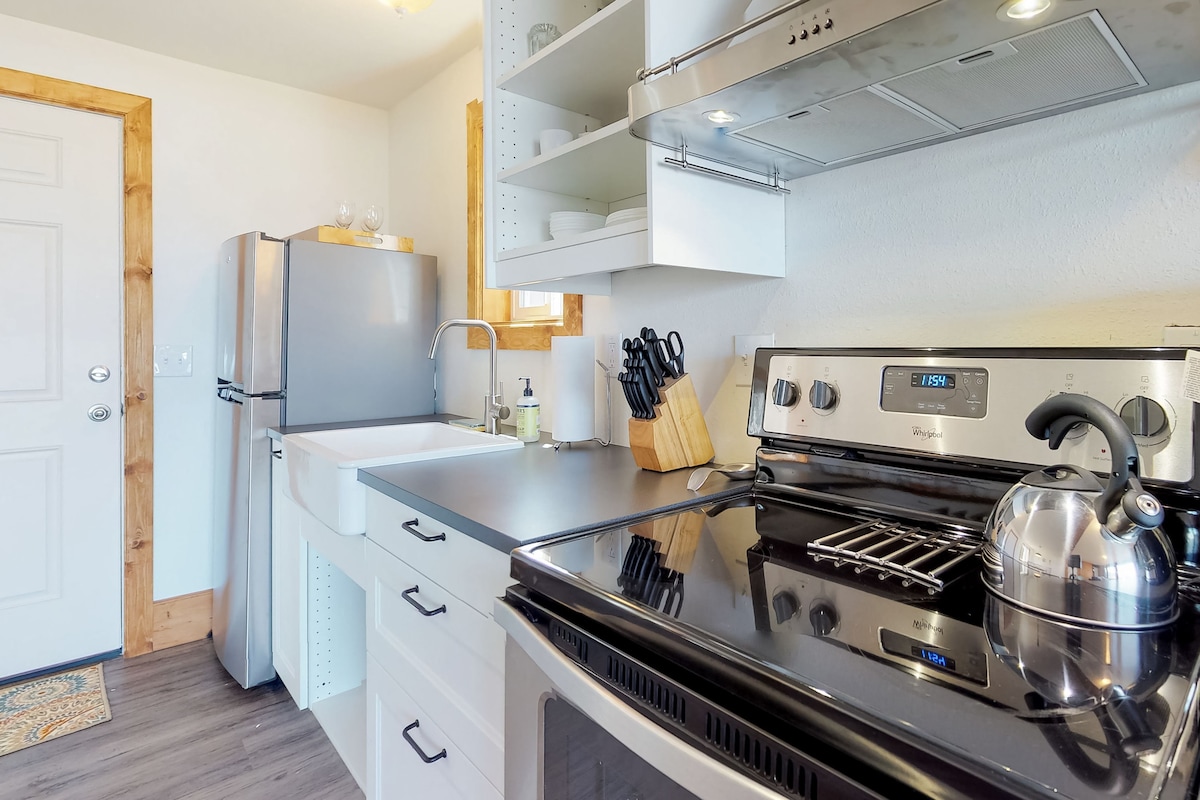 In questa suite tranquilla e in posizione centrale, nascosta dietro una casa degli anni '30 su una piccola collina, sarai vicino a tutto ciò che è importante. Raggiungi a piedi il centro storico, a 320 metri, dove potrai visitare il porto di Siuslaw, molti rinomati ristoranti, gallerie d'arte e negozi. L'autostrada 101 si trova a un paio di isolati di distanza, dove si trova il nostro famoso ristorante Pono Hukilau. Cammina un po' più lontano fino all'Exploding Whale Park e goditi un picnic sulla spiaggia del fiume, oppure raggiungi in auto Heceta Beach per trascorrere lì la giornata.