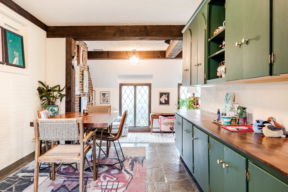 Soggiorna nel tuo appartamento privato, bello e luminoso con due camere da letto e dettagli architettonici storici degli anni '70, tra cui pareti in mattoni originali, porte ad arco nel soggiorno e pareti in pietra in cucina. L'unità è stata recentemente ristrutturata per mantenere il suo antico fascino, aggiornando e modernizzando la cucina, il soggiorno e le due camere da letto. È uno spazio eccellente per le vacanze o il lavoro. Wifi veloce + Roku TV.