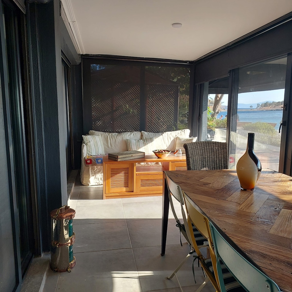 La nostra casa si trova in posizione centrale a Eski Foça. 20 metri per la spiaggia, 3 minuti per il bazar e ristoranti sulla spiaggia e 2 minuti a piedi per la spiaggia pubblica. 2+1 cucina a vista. Nel soggiorno e nella camera da letto c'è l'aria condizionata. Ristrutturato di recente (2023) in una strada spaziosa e tranquilla