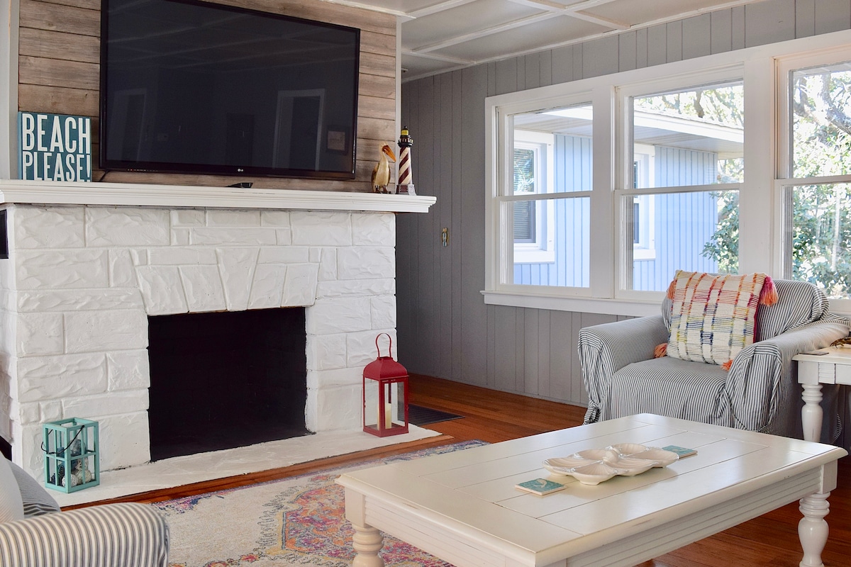 Questo incantevole cottage degli anni '40 con 2 camere da letto, completamente ristrutturato, si trova in una posizione privilegiata a un isolato dalla spiaggia. La disposizione è tipica di Folly Beach: un'enorme veranda anteriore, che cattura la brezza dell'oceano, un soggiorno affiancato da due camere da letto, entrambe con letti matrimoniali e bagno privato completo. Una cucina luminosa con elettrodomestici nuovi e tutti i comfort per preparare un pasto in vacanza. A pochi passi o in bicicletta da Center Street, dove troverai ottimi ristoranti e negozi. Charleston dista meno di 15 minuti in auto.