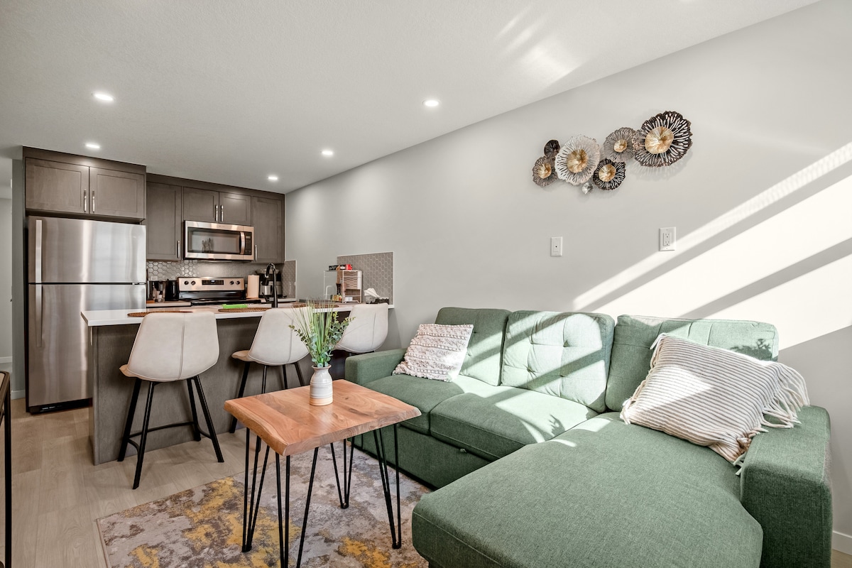 Rilassati e ricaricati in quest'oasi di quiete ed eleganza. La nostra immacolata suite privata si trova nella splendida comunità lacustre di Mahogany, a Calgary. La suite si trova appena fuori dai percorsi ciclabili/pedonali che conducono al campo e alle splendide zone umide, a soli 12 minuti a piedi dal vivace Mahogany Village. La tua nuovissima suite si trova su un ampio terreno angolare con parcheggio sul lato e ingresso privato lastricato. La suite include una grande camera, cucina completa, lavatrice e asciugatrice, TV e bagno completo.