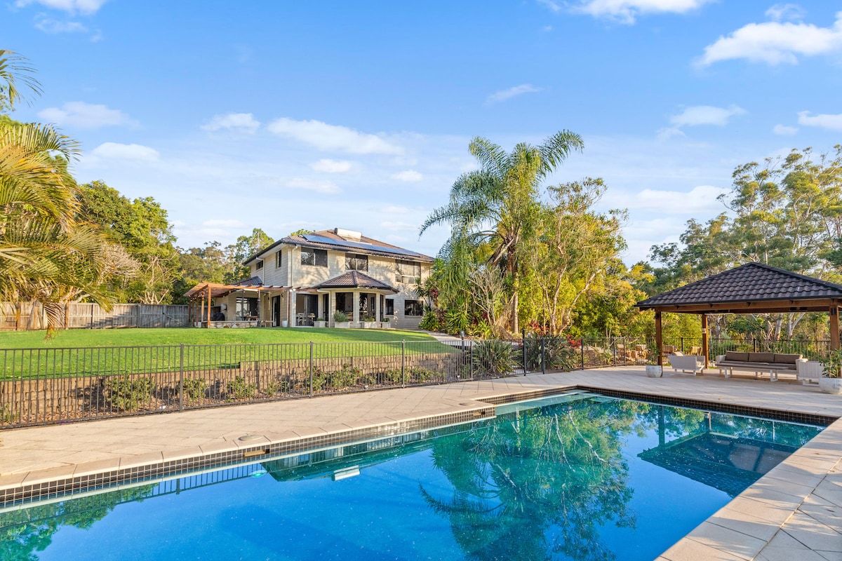 Luxury private residence adjacent to Buderim Forest Park, where Martin's Creek cascades over a series of waterfalls. Only 700m to Buderim village's eateries and boutiques. Lovingly created to spoil you to bits! Wake to birdsong, wander down the gully, morning coffee in the hanging chair, take up a book in the window seat and at end of day a relaxing magnesium bath under the stars. We are here to make sure you have everything you need, however **You won't be disturbed** This your private oasis