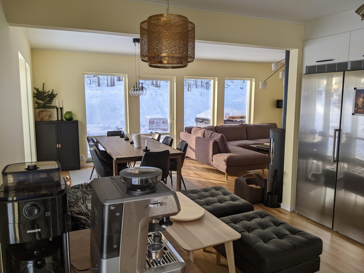 Benvenuti da noi a Järvsö! Abbiamo arredato l'appartamento con la stessa sensazione meravigliosa che desideriamo quando partiamo e vogliamo stare davvero bene. Con noi vivi in un appartamento di nuova costruzione vicino a impianti di risalita per sci e biciclette (circa 200 metri). All'esterno ci sono sentieri e percorsi per la corsa, il ciclismo e lo sci di fondo e una palestra all'aperto di nuova costruzione. Abbiamo scelto con cura i dettagli, come le tende telecomandate di Luxaflex, i dettagli di Klong e Superfront e le attrezzature da cucina di Global, Dualit, Le Creuset e Zwilling