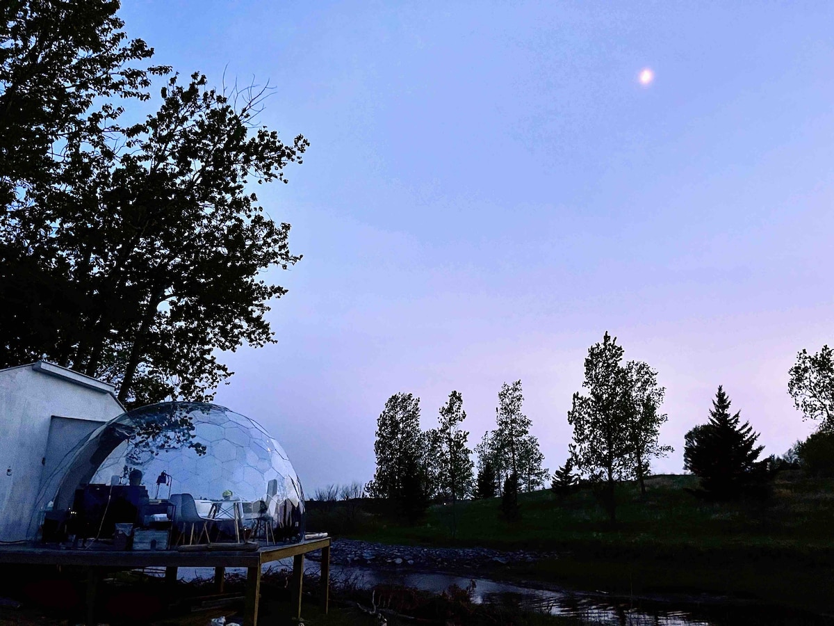 Questa cabina a cupola per glamping 4 stagioni fuori rete si trova su una bellissima proprietà di 20 acri a 10 minuti di auto dalle rive del lago Winnipeg e a 5 minuti dal lago Gull. Goditi una passeggiata sui nostri sentieri nella foresta, immergiti nella nostra vasca idromassaggio a legna, prendi il nostro gommone per pagaiare o esplora gli innumerevoli sentieri escursionistici nelle vicinanze. Situato appena fuori da un sentiero per motoslitte, questa è una base perfetta per motoslitte, pescatori di ghiaccio e sciatori di fondo in inverno.