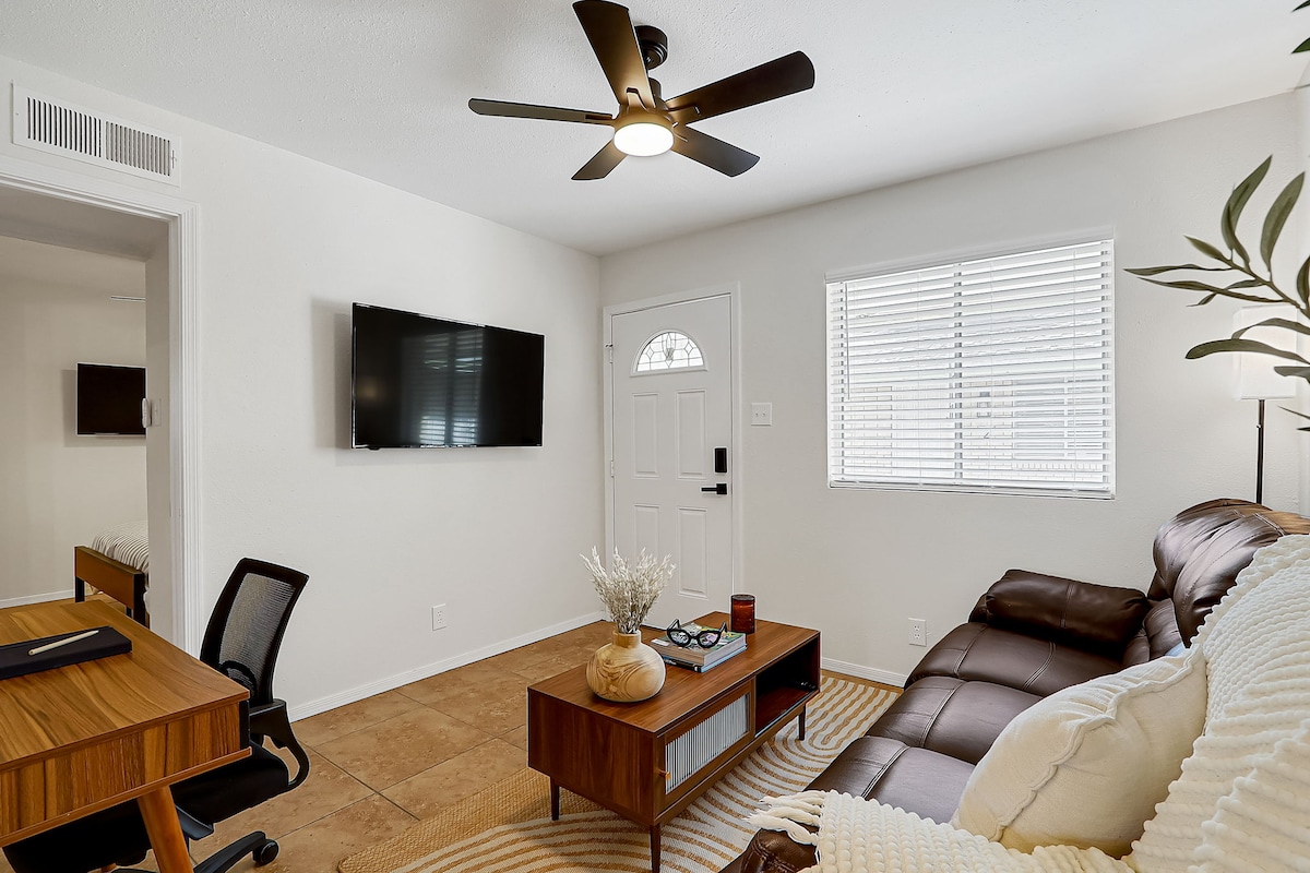 Goditi una vacanza all'insegna dello stile in questo spazio in centro. Divertiti con la tua famiglia nella nostra sala dedicata all'intrattenimento. Oppure dormi bene nel nostro letto king-size o in uno dei nostri 2 letti queen-size con lenzuola di alta qualità. La nostra cucina ha tutto l'essenziale, con tanto spazio per intrattenere o godersi una cena romantica. Prenota subito con noi e scopri il tempo e la cura che abbiamo dedicato alla creazione di una destinazione a El Paso.