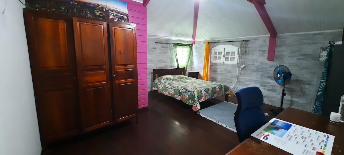 Kontan wè zot! (Benvenuti). Qui avete un GRANDE GIARDINO + PARCHEGGIO SICURO con spazio fumatori all'aperto. L'alloggio è perfettamente situato: - a 15 minuti di auto dall'aeroporto, - fermate di autobus + TCSP di fronte all'alloggio, - a 15 minuti a piedi: > le navi da crociera o Express delle isole, > la spiaggia della Française e il Fort Saint-Louis, > il mercato coperto +shopping, > la navetta marittima per il sud. Il TRASPORTO aeroporto/porto è a pagamento. TARIFFA RIDOTTA: SETTIMANA/MESE.
