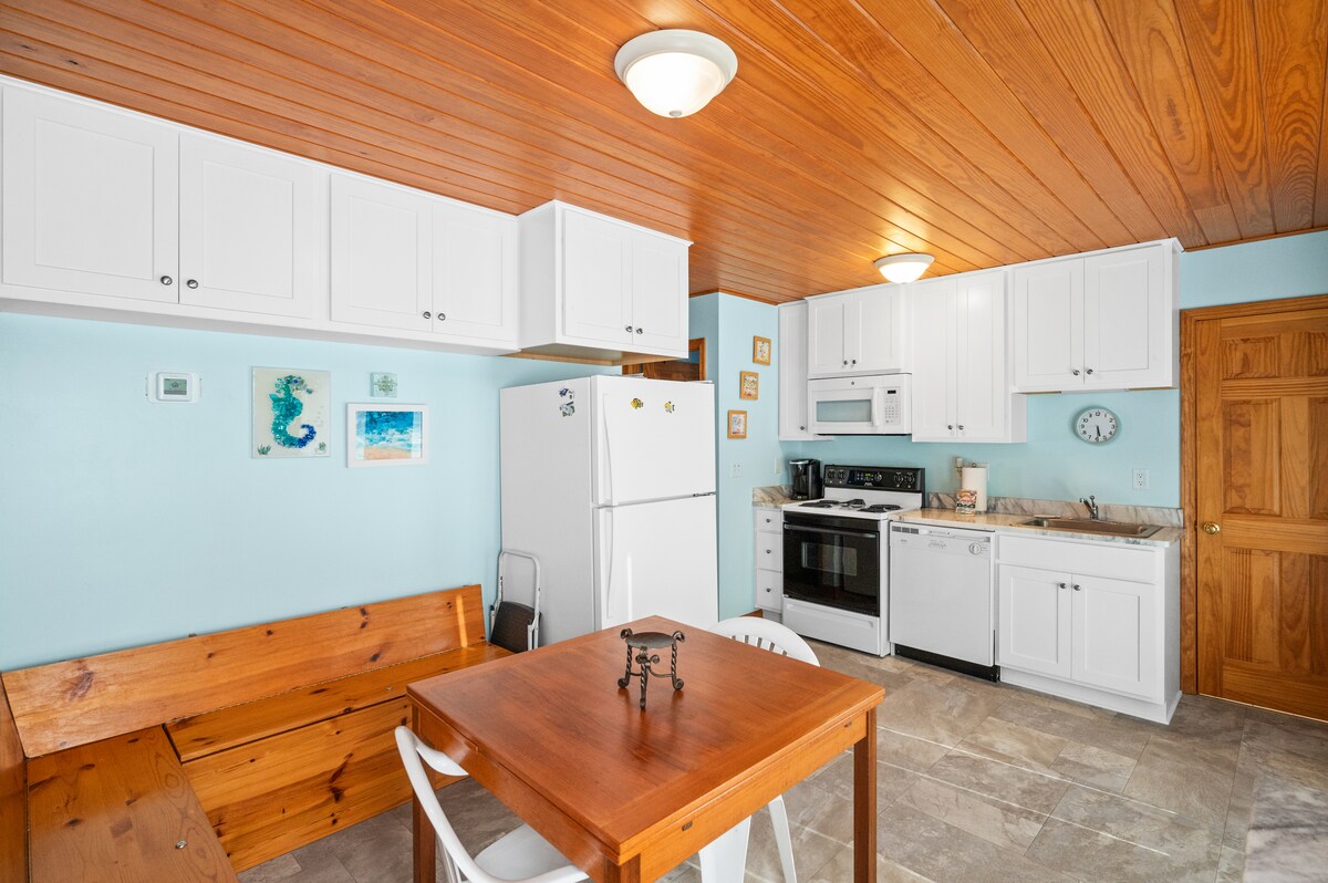 The upgraded kitchen features granite counters and lots of prep area for those family vacation meals. The master bath has a soaking tub with a separate walk-in shower. Secondary suite has a King guest room with private bath. The third guest room has two bunks (twin over full). Pier is shared with our neighbor to the south, it is NOT a community pier. Enjoy the private beach, which is ideal for the kids and pups alike. There is a fenced kennel for the pups.